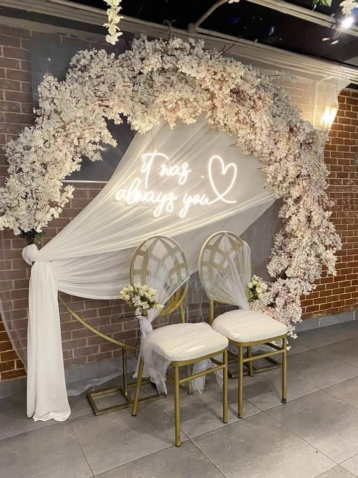 من ناحية الميزانية، الفريق عندهم مرن جدًا وبيقدر يوازن بين الشياكة والتكلفة. بيستخدموا خامات بسيطة لكن بجودة عالية، وبيقدموا دايمًا اقتراحات ذكية تخلي الشكل النهائي فخم من غير ما يكون مكلف. ممكن يستخدموا ورود موسمية أو عناصر ديكور بسيطة تطلع بنفس النتيجة الأنيقة.