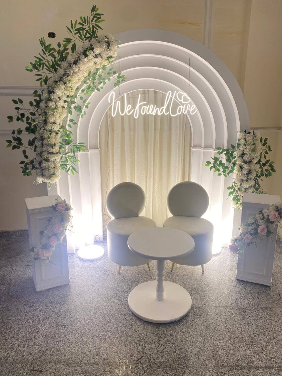 في موضوع الديكور، Money Party ليهم بصمة مختلفة بتبان في شغلهم. الكوشة بتتصمم بشكل متناسب مع القاعة بحيث الصور تبقى متوازنة، الطاولات بيتحط عليها ديكورات بسيطة وشيك من غير زحمة، وركن التصوير بيتعمل بنفس الثيم علشان الألبوم يبان متناغم. كمان الإضاءة بيتوزع بعناية علشان يدي جو رومانسي ويبرز جمال القاعة.