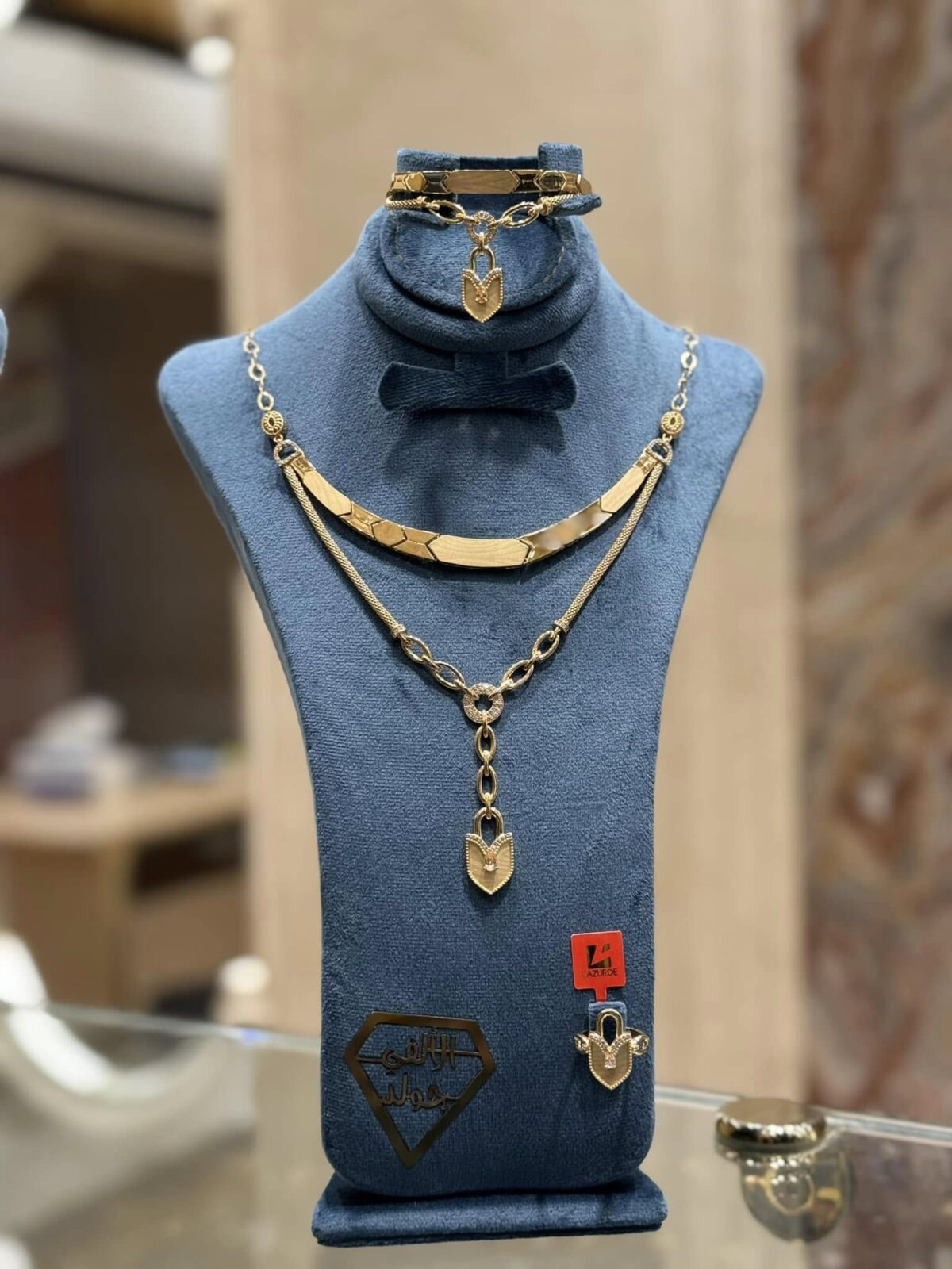 اللي بيميّز ALalfy Gold إن عنده تشكيلات متنوعة تناسب كل الأذواق. العروسة اللي بتحب الستايل الكلاسيكي الهادئ هتلاقي موديلات بسيطة ورقيقة فيها لمسات ناعمة تدّي إحساس بالرقي. وفي نفس الوقت البنات اللي بيميلوا للشكل العصري والشغل اللي فيه تفاصيل جديدة هيلقوا موديلات مودرن فيها خطوط مختلفة ولمسات عصرية سواء في الدبل، الخواتم، الأطقم أو الغوايش. التنوع ده بيسهّل على كل عروسة تلاقي حاجة على مزاجها من غير ما تلف كتير.