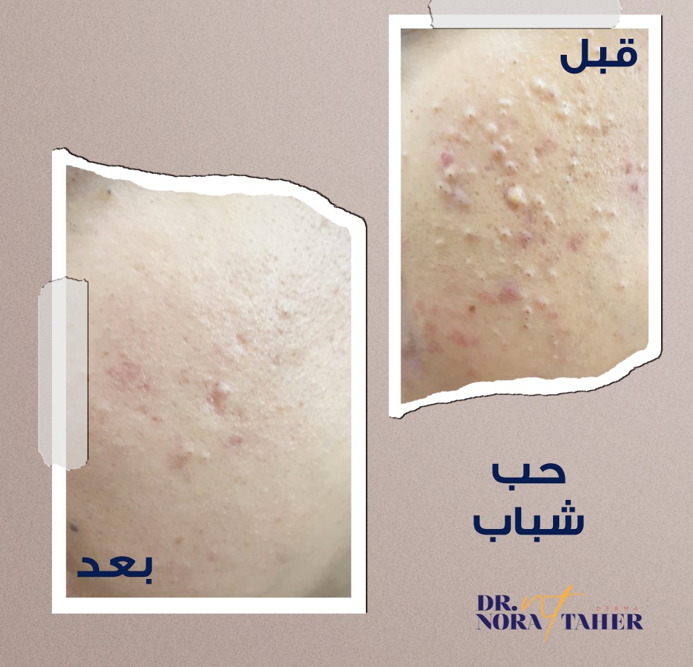 علاج حب الشباب وآثاره: جلسات علاج متخصصة باستخدام الليزر أو التقشير الكيميائي للتخلص من حب الشباب والندبات الناتجة عنه.