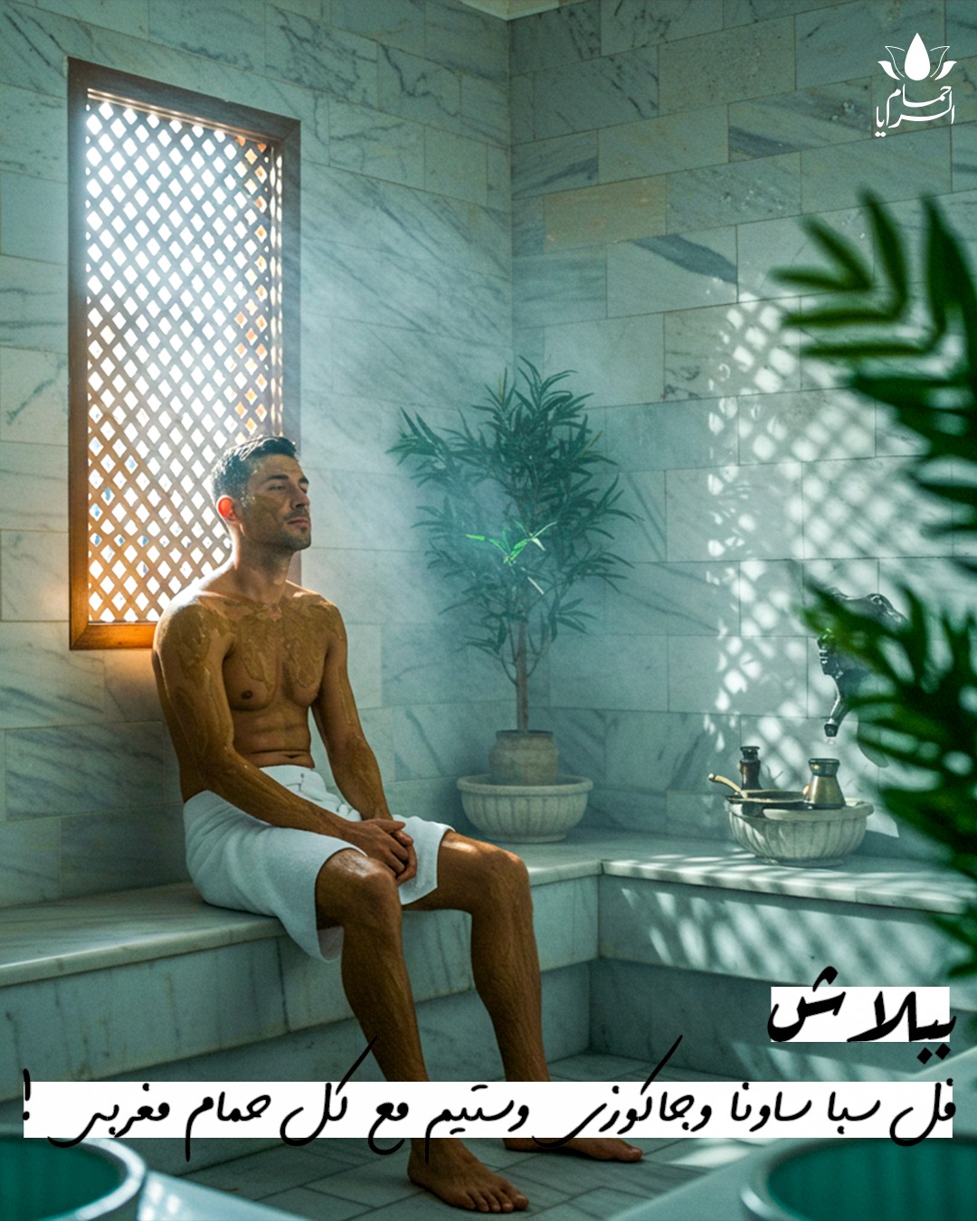 في حمام السرايا، هتبدأ بجلسة حمام مغربي بجودة عالية، ودي بتبدأ ببخار دافي بيساعد على فتح المسام وتنظيف الجلد بعمق. بعد كده بيتم استخدام الصابون المغربي مع اللوفة الخشنة علشان تقشير الجلد وإزالة كل بقايا التعب والإرهاق اللي ممكن تكون في جسمك. الجلسة دي بتديك إحساس فوري بالانتعاش.