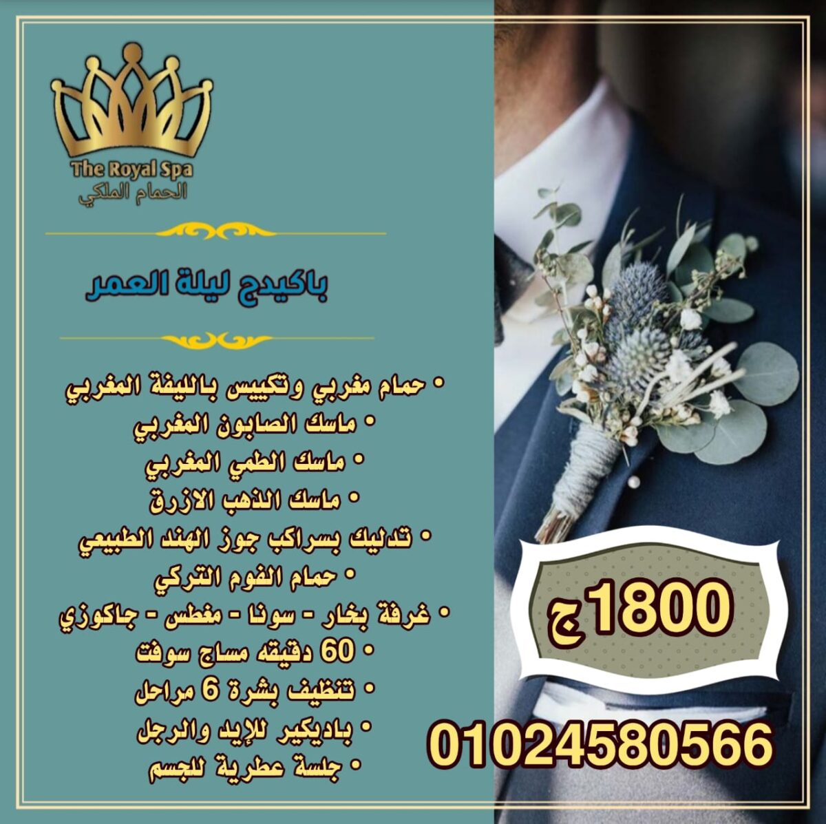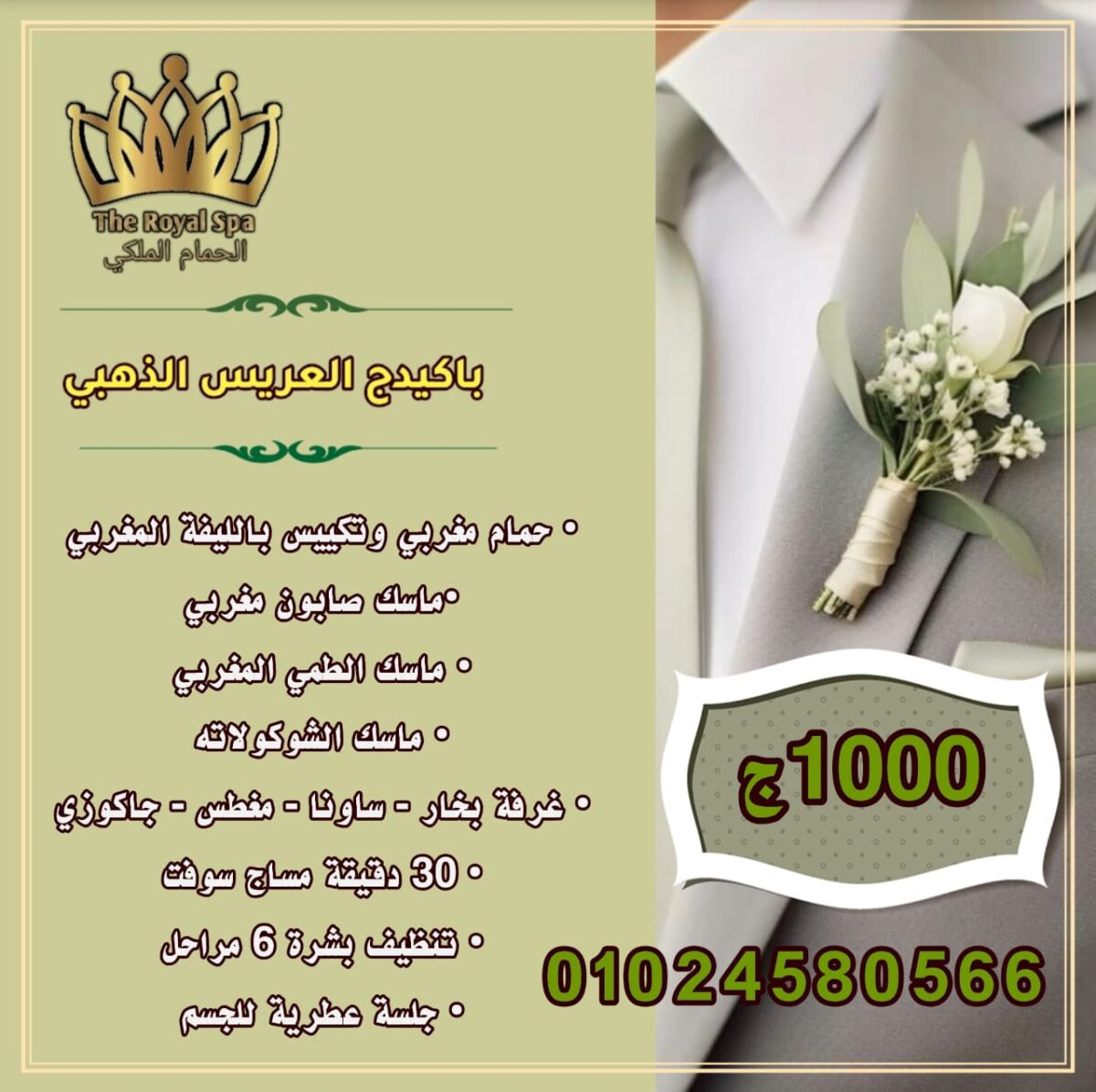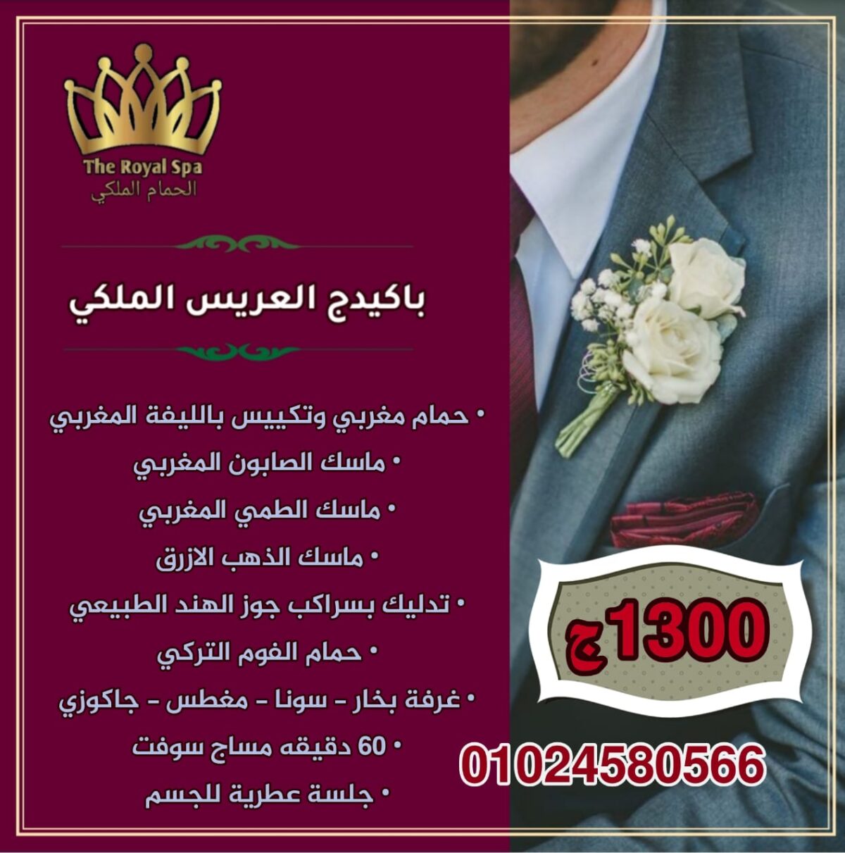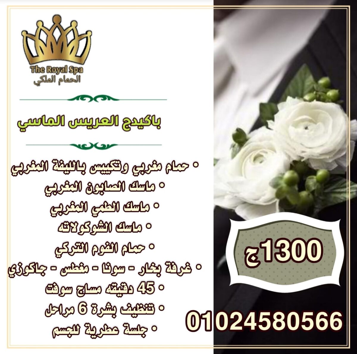 المكان بيقدم باكدجات خاصة للعرسان، بتشمل مزيج من الحمام المغربي أو التركي، جلسات التدليك، وتنظيف البشرة. الباكدجات دي أسعارها مناسبة جدًا وبتوفرلك كل اللي تحتاجه في يوم واحد.
