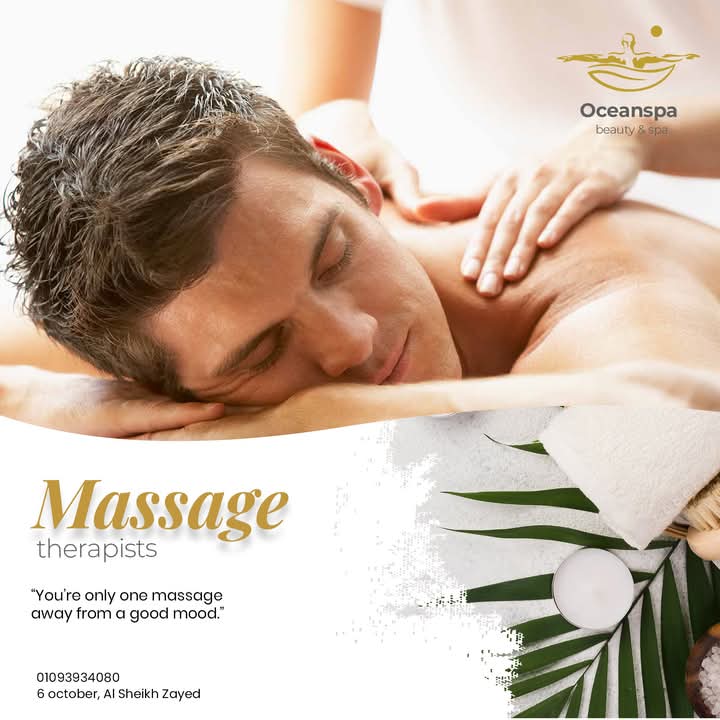 المساج الرجالي، وده واحد من أقوى وأشهر خدمات OCEAN SPA. عندك اختيارات كتير من أنواع المساج، زي: