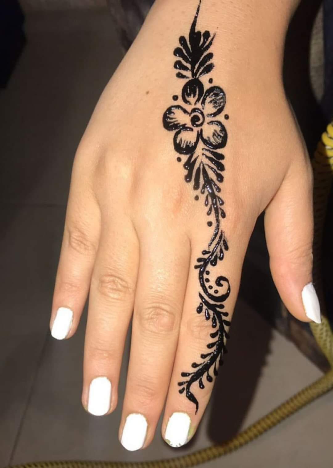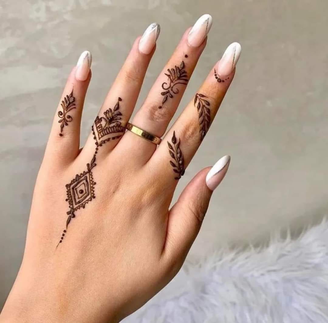 الرسم بياخد وقته على حسب حجم التصميم، وغالبًا بيستغرق من ساعة ونص لحد تلات ساعات. الرسامة بتبدأ بالخطوط الأساسية الأول وبعدها تملأ المساحات بزخارف دقيقة، وفي الآخر ممكن تضيف لمسات بسيطة زي بودرة دهبي أو لمعة جل علشان النقش يبان بشكل أجمل في الصور والفيديوهات.