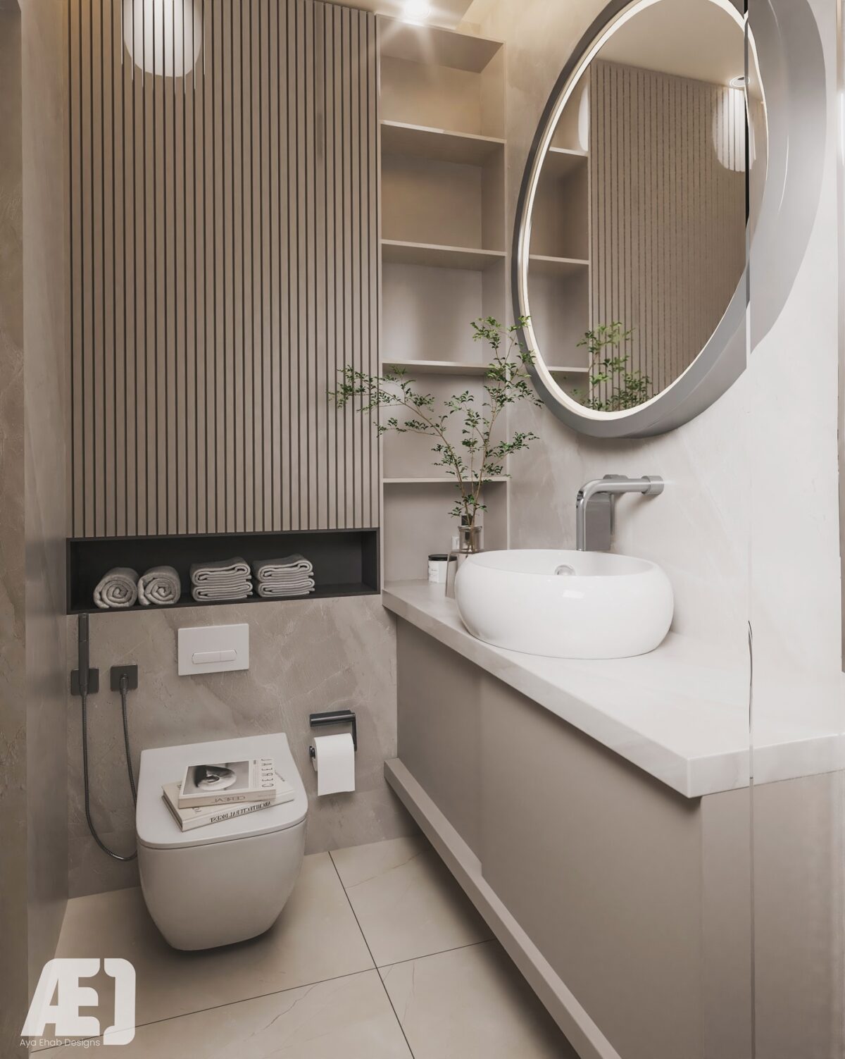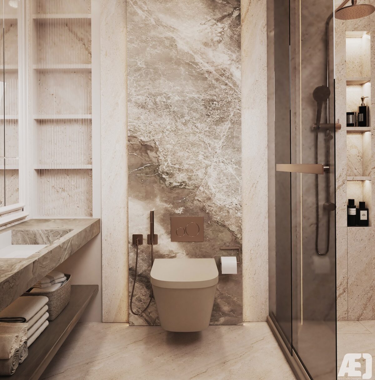 كمان كل تفصيلة في التصميم بيكون ليها هدف واضح، مفيش عنصر موجود لمجرد الشكل. التفكير دايمًا بيكون في سهولة الحركة وتنظيم المساحات علشان البيت يفضل مرتب ومريح مع الوقت.