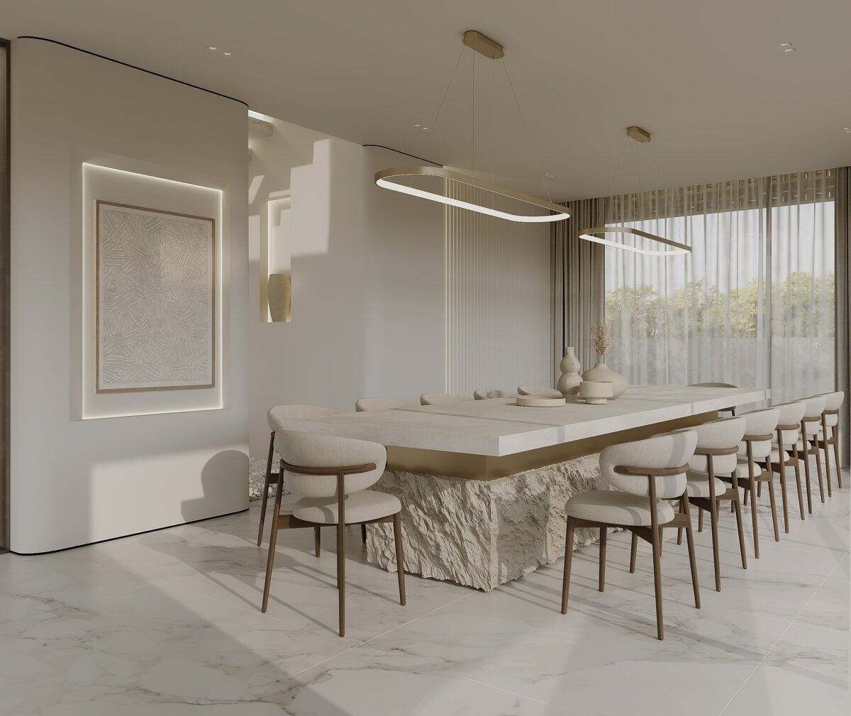Venice Design Studio بتركّز على اختيار خامات عملية تتحمّل الاستخدام اليومي وتكون سهلة في التنضيف، لأن البيت الجديد محتاج حلول تعيش مع الوقت ومش تسبب مشاكل بعد السكن. الراحة هنا مش بس في الشكل، لكن في إن المكان يفضل عملي ومريح في العيشة اليومية.