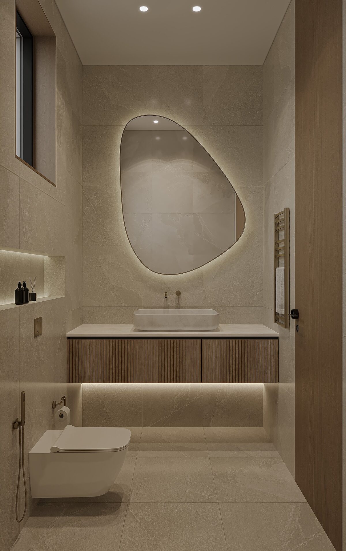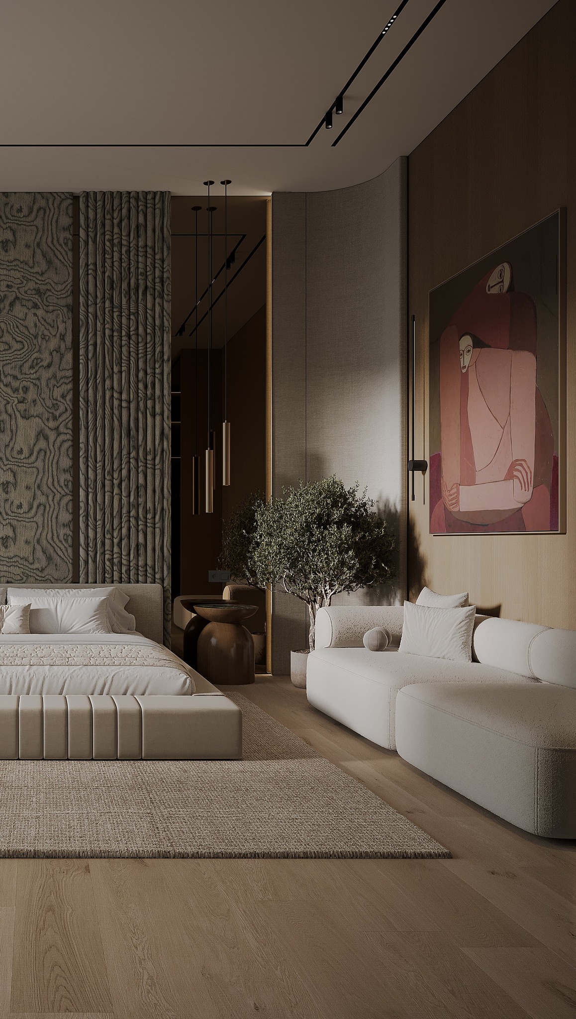 كمان كل تفصيلة في التصميم بيكون ليها هدف واضح، مفيش عنصر موجود لمجرد الشكل. التفكير دايمًا بيكون في سهولة الحركة وتنظيم المساحات علشان البيت يفضل مرتب ومريح مع الوقت.