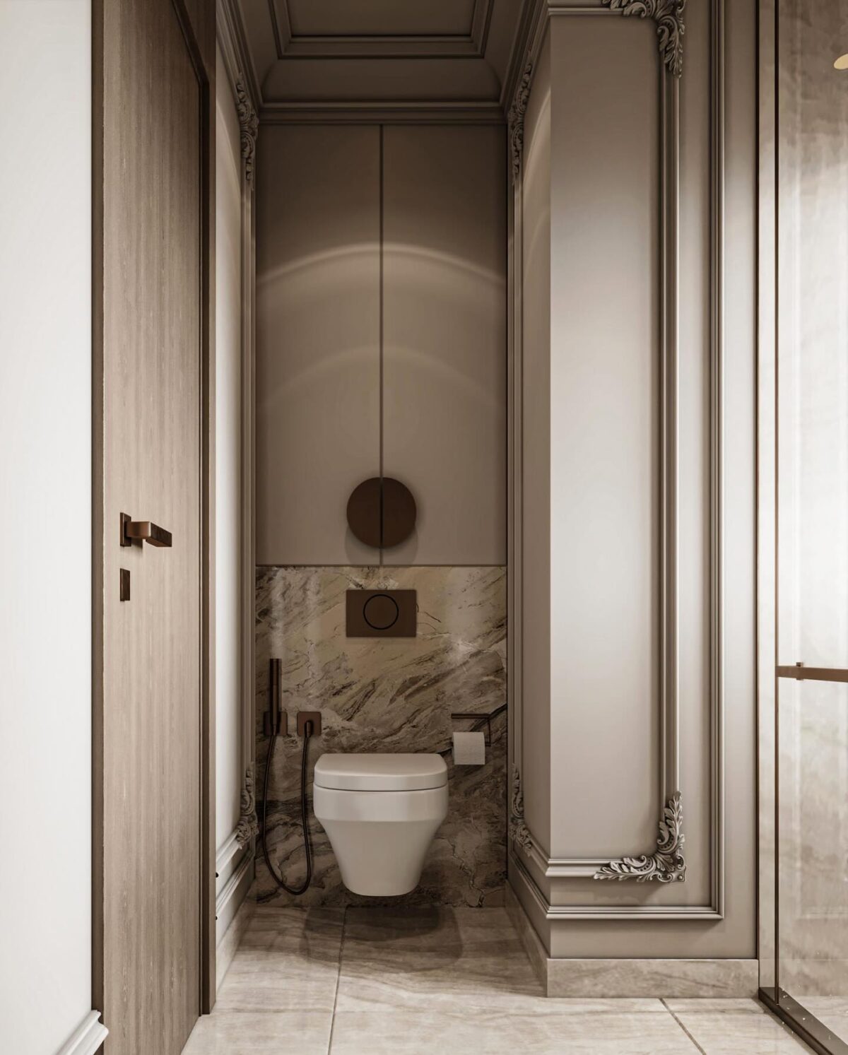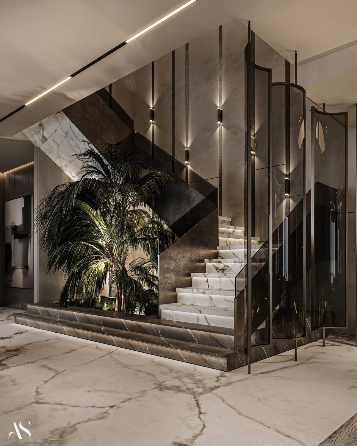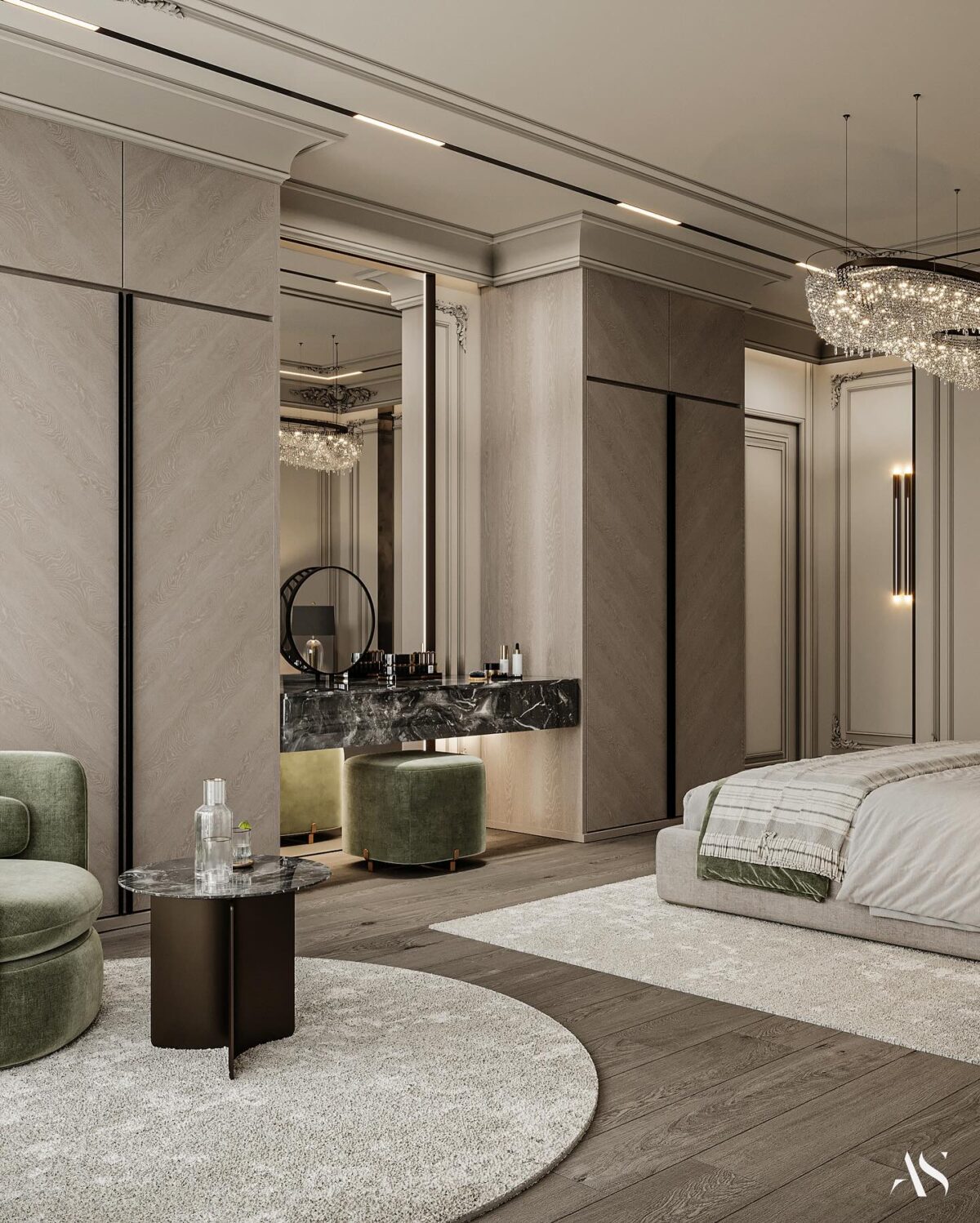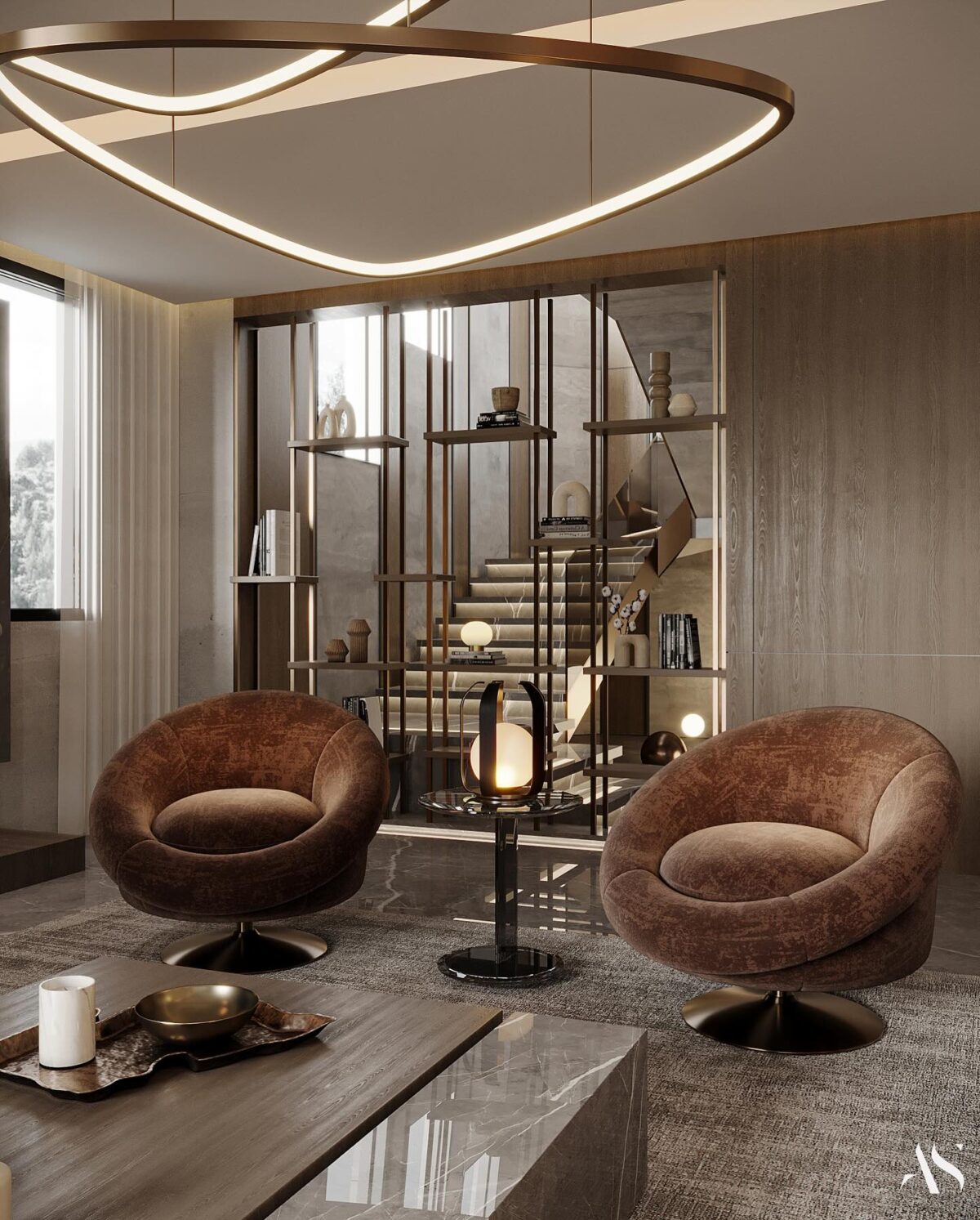 كمان كل تفصيلة في التصميم بيكون ليها هدف واضح، مفيش عنصر موجود لمجرد الشكل. التفكير دايمًا بيكون في سهولة الحركة وتنظيم المساحات علشان البيت يفضل مرتب ومريح مع الوقت.