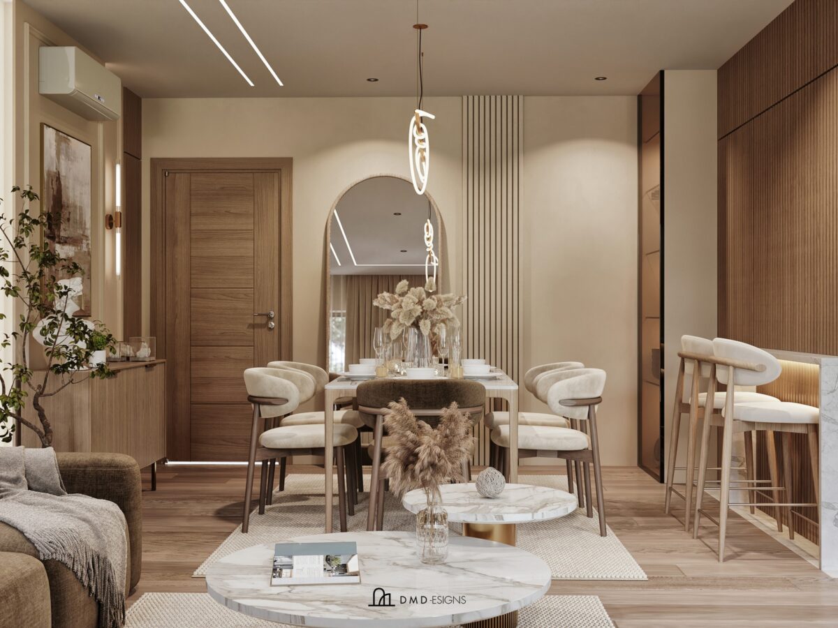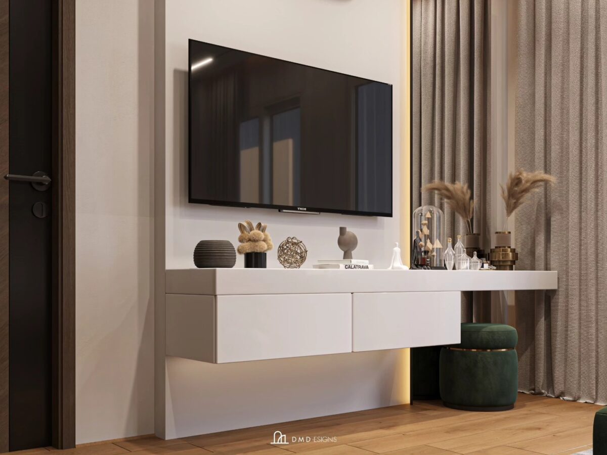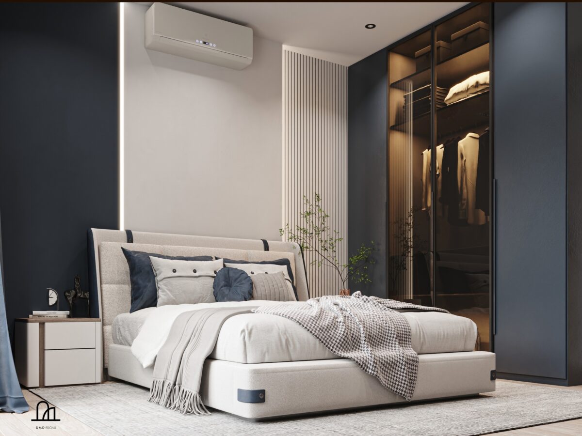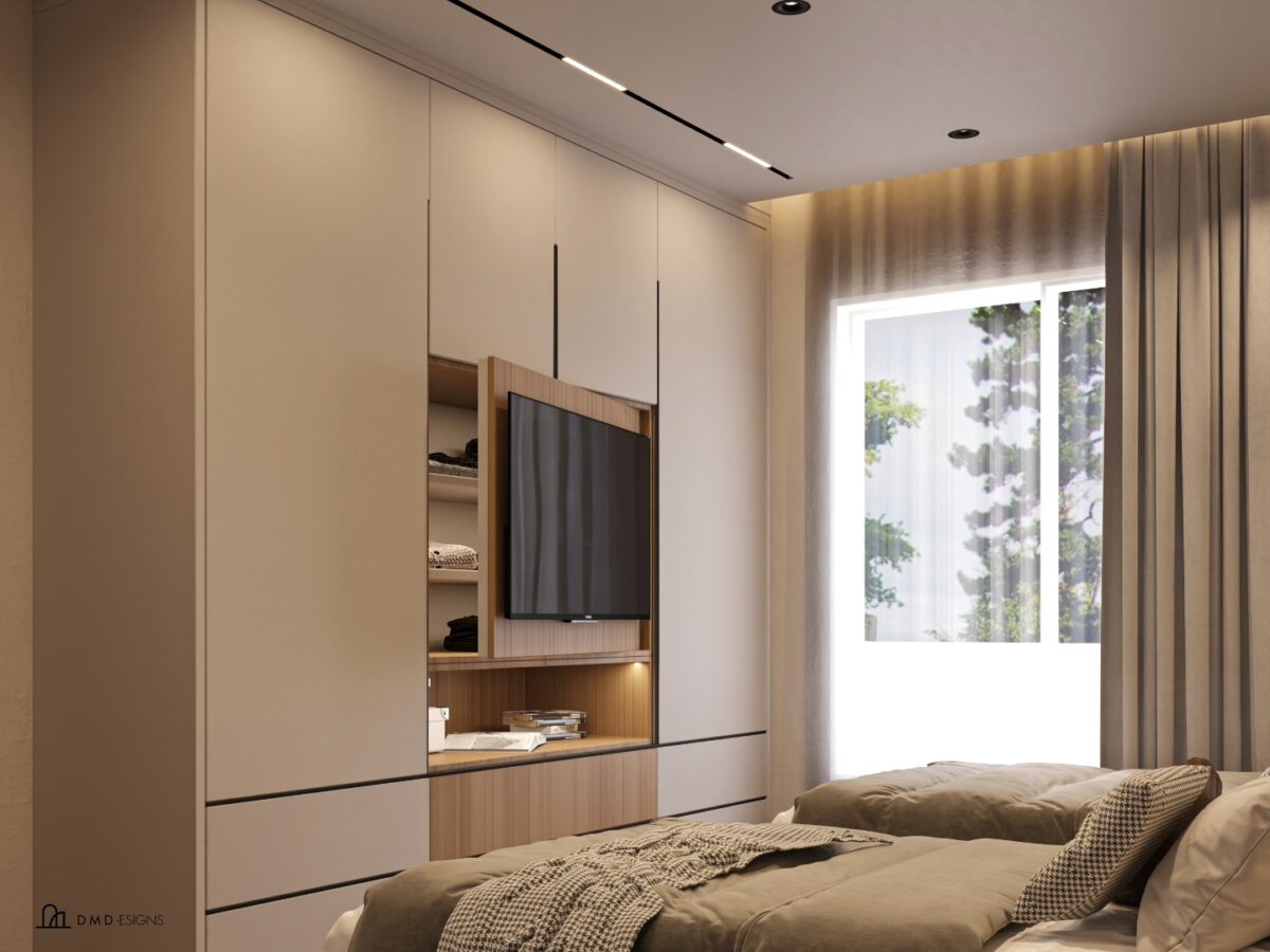DMD -esigns interior بتهتم إن التصميم يكون بسيط ومتوازن، بعيد عن الزحمة أو التفاصيل الكتير اللي ممكن تتعب مع الوقت. اختيار الألوان بيكون هادي ومريح للعين، يساعد إن المكان يبان أوسع وأهدى. التناسق بين الخامات واللمسات النهائية بيدي إحساس بالترتيب والاستقرار، وده مهم جدًا في بداية حياة جديدة.