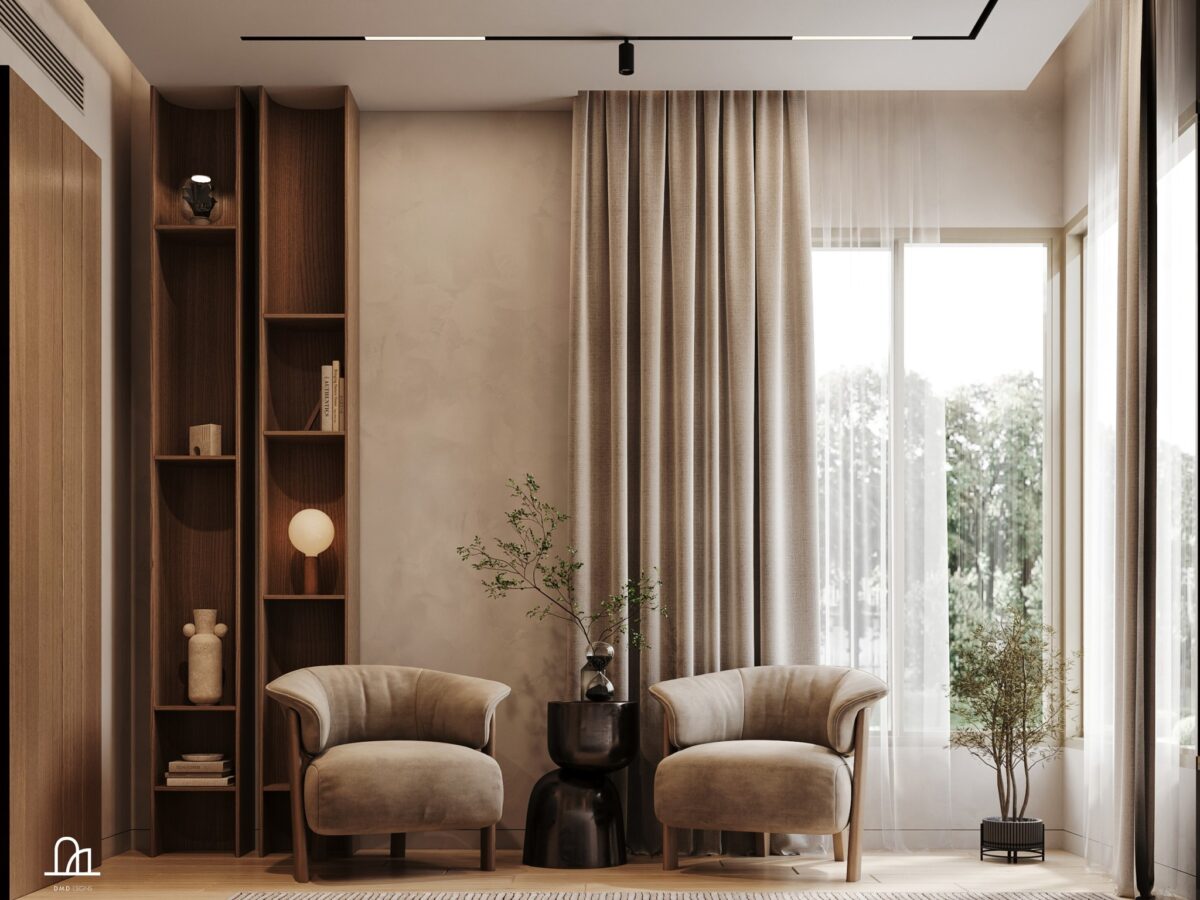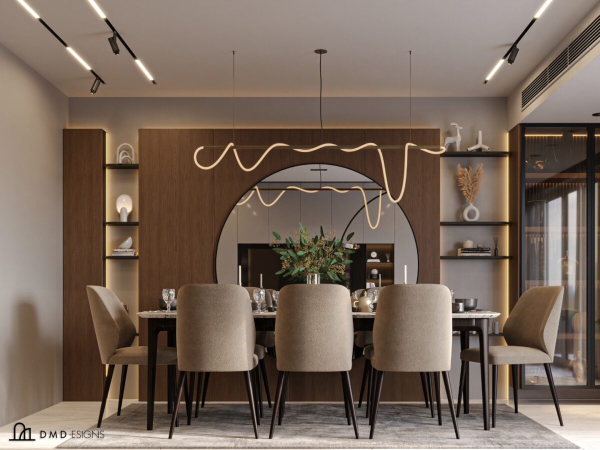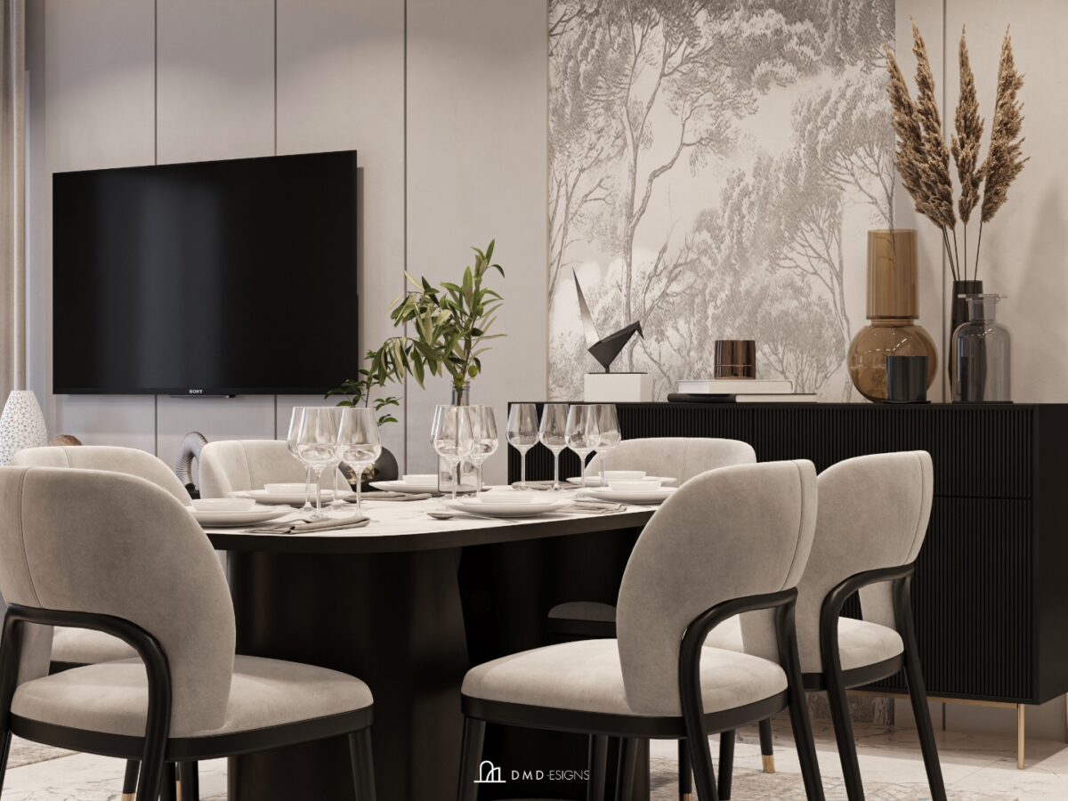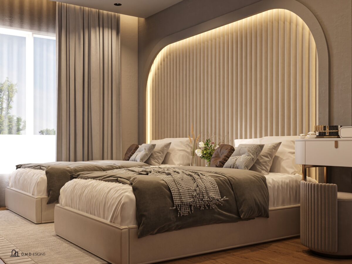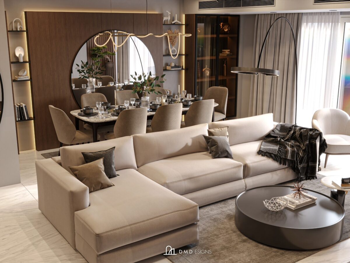DMD -esigns interior بتهتم إن التصميم يكون بسيط ومتوازن، بعيد عن الزحمة أو التفاصيل الكتير اللي ممكن تتعب مع الوقت. اختيار الألوان بيكون هادي ومريح للعين، يساعد إن المكان يبان أوسع وأهدى. التناسق بين الخامات واللمسات النهائية بيدي إحساس بالترتيب والاستقرار، وده مهم جدًا في بداية حياة جديدة.