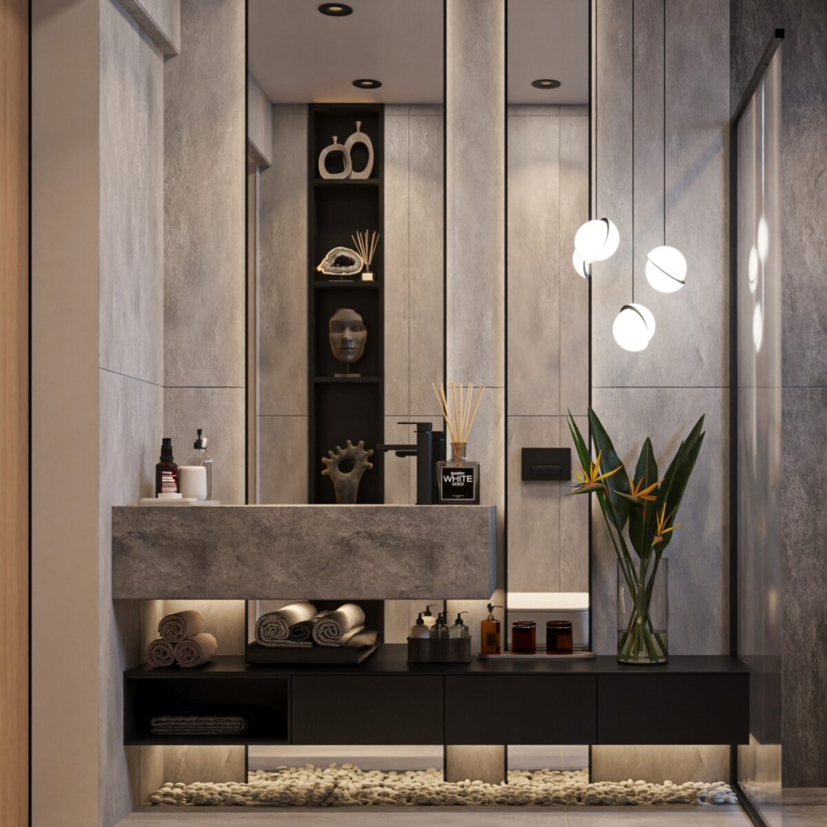 كمان كل تفصيلة في التصميم بيكون ليها هدف واضح، مفيش عنصر موجود لمجرد الشكل. التفكير دايمًا بيكون في سهولة الحركة وتنظيم المساحات علشان البيت يفضل مرتب ومريح مع الوقت.