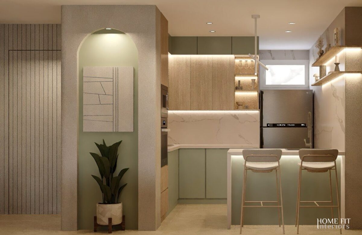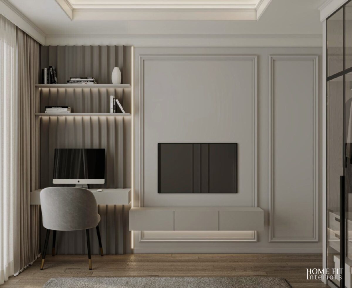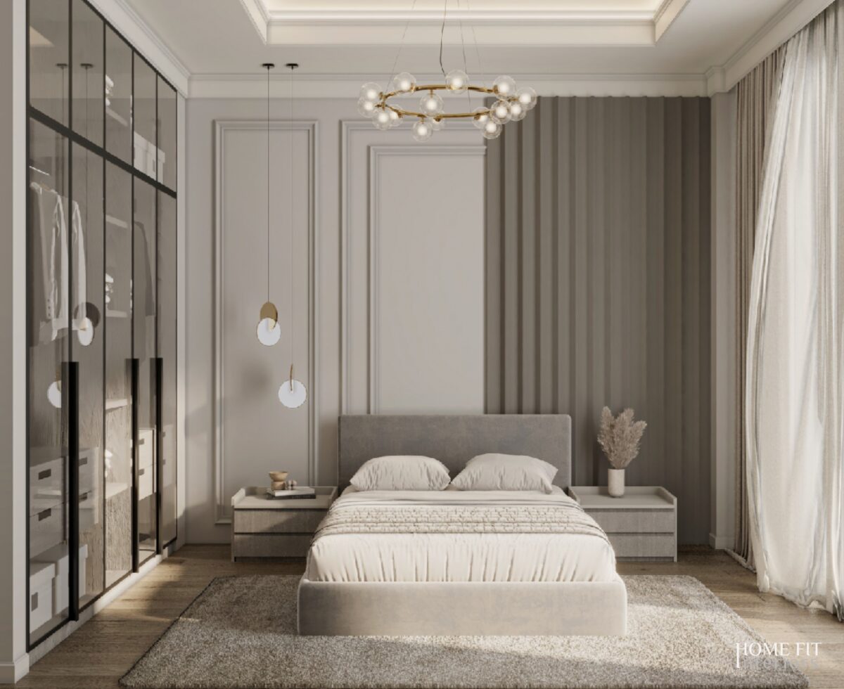 في التصميم الداخلي، Home Fit Interior & Exterior Design بتهتم إن الشكل يكون بسيط ومتوازن، بعيد عن الزحمة أو التفاصيل اللي ممكن تتعب مع الوقت. اختيار الألوان بيكون هادي ومريح للعين، يساعد إن المكان يبان أوسع وأهدى. التناسق بين الخامات واللمسات النهائية بيدي إحساس بالترتيب والاستقرار، وده مهم جدًا في بداية حياة جديدة.