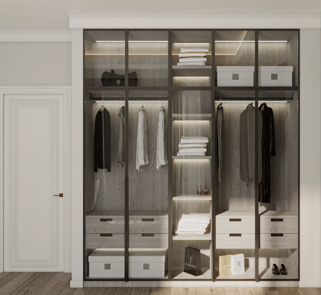 كمان كل تفصيلة في التصميم بيكون ليها هدف واضح، مفيش عنصر موجود لمجرد الشكل. التفكير دايمًا بيكون في سهولة الحركة وتنظيم المساحات علشان البيت يفضل مرتب ومريح مع الوقت.