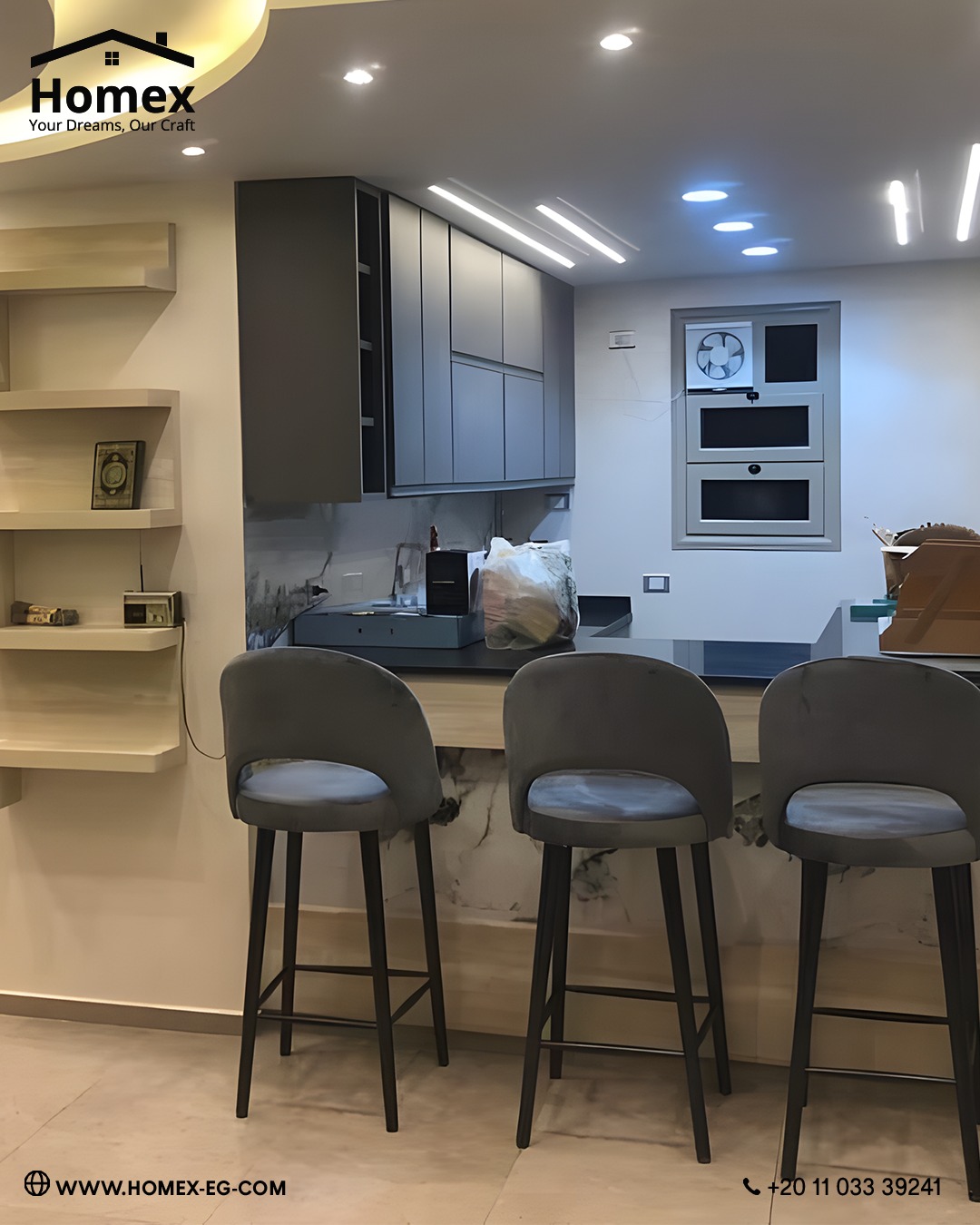 Homex بتركّز على اختيار خامات عملية تتحمّل الاستخدام اليومي وتكون سهلة في التنضيف، لأن البيت الجديد محتاج حلول تعيش مع الوقت ومش تسبب مشاكل بعد السكن. الراحة هنا مش بس في الشكل، لكن في إن المكان يفضل عملي ومريح في العيشة اليومية.