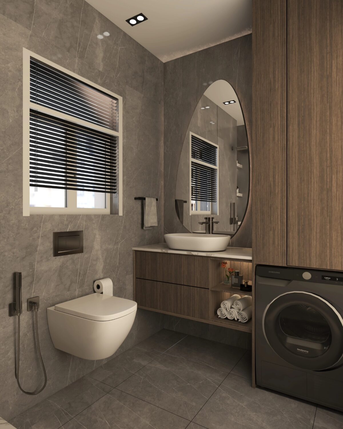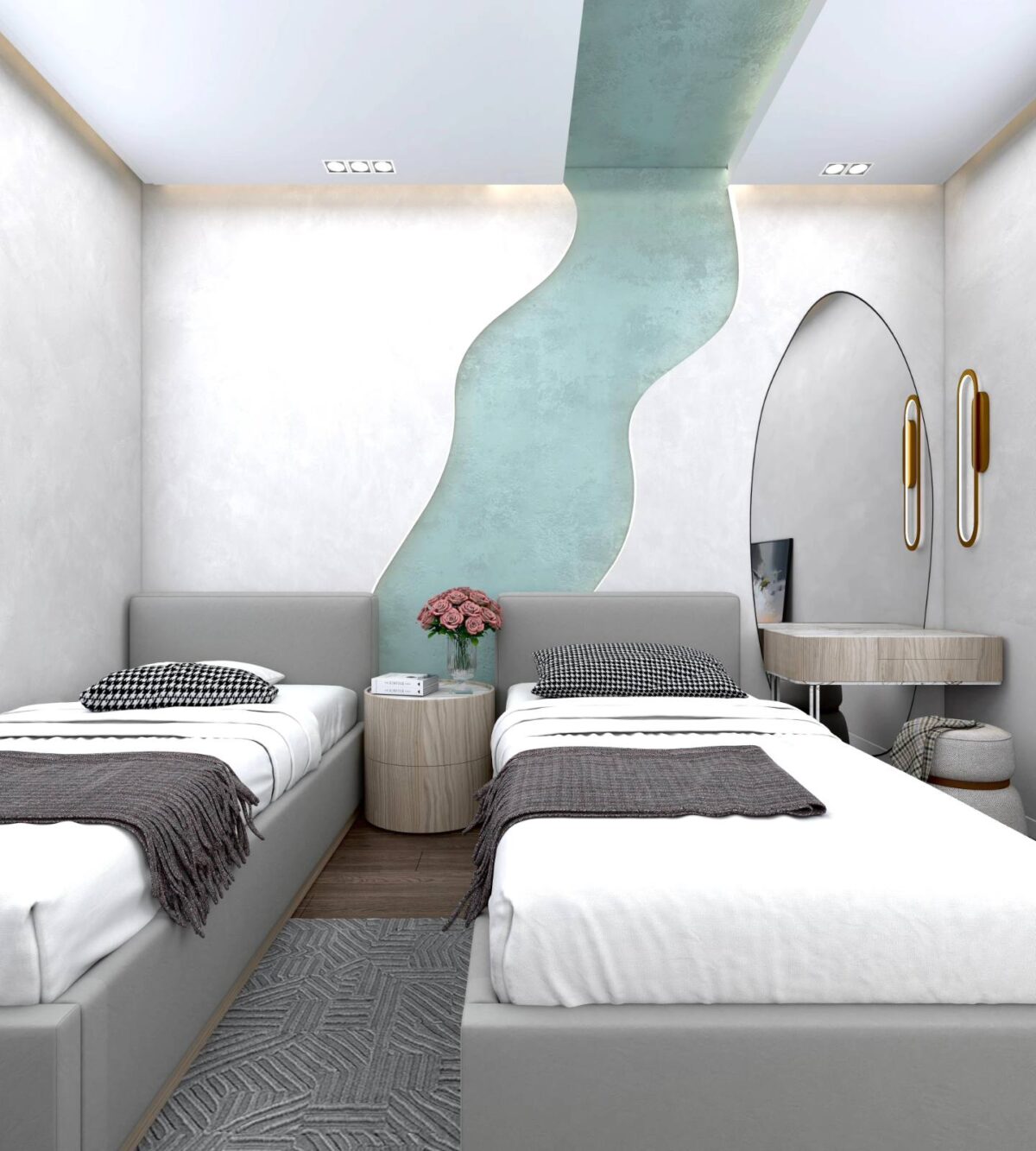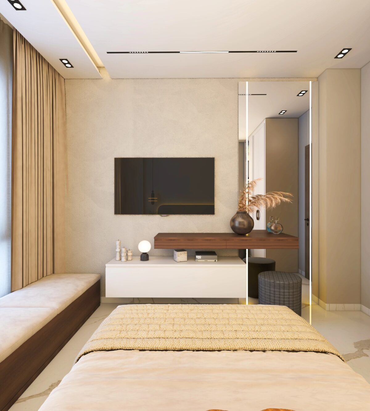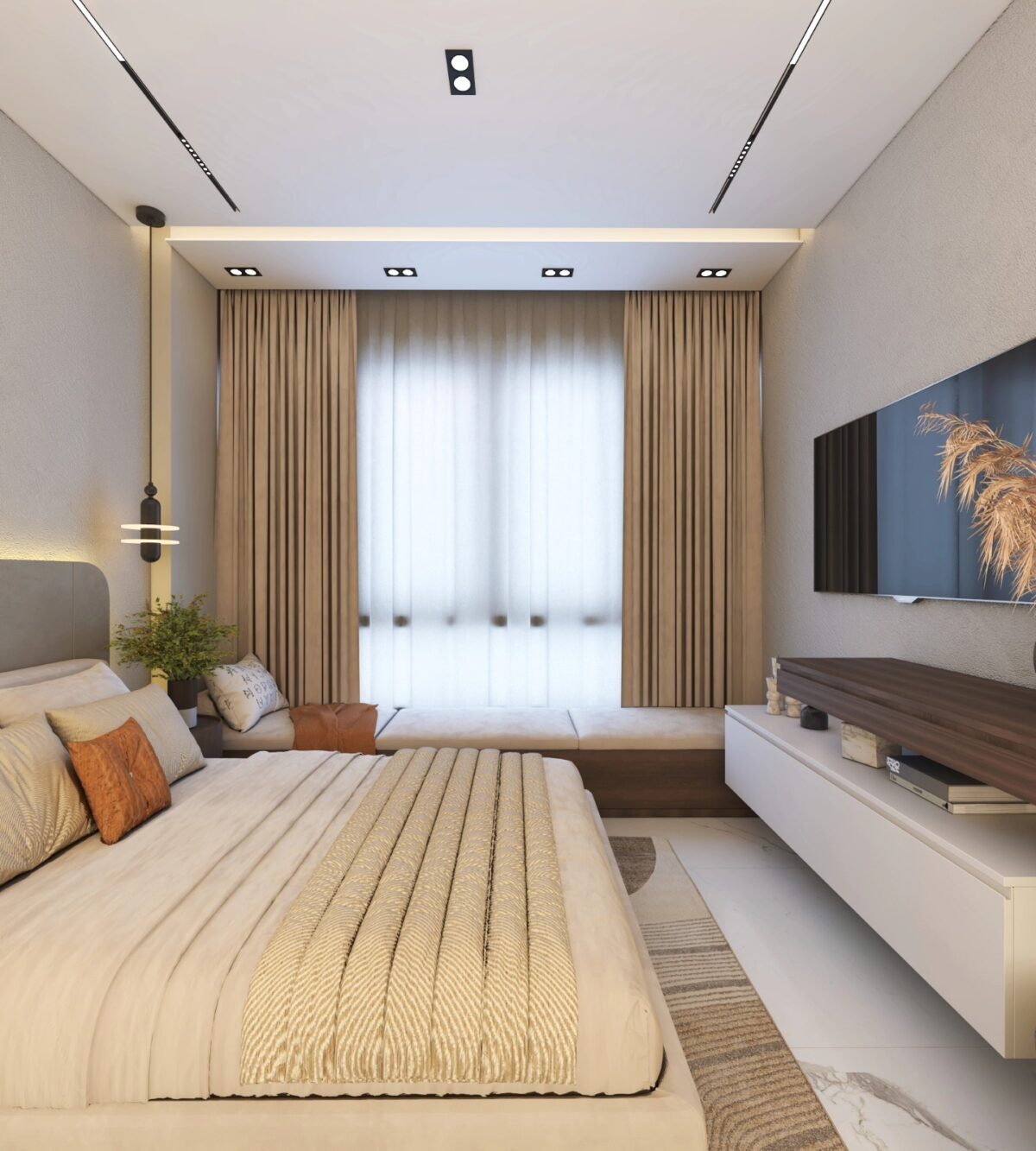 Jazz Design Co. بتهتم إن التصميم يكون بسيط ومتناسق، بعيد عن الزحمة أو التفاصيل اللي ممكن تتعب مع الوقت. اختيار الألوان بيكون هادي ومريح للعين، وده بيساعد إن المكان يبان أوسع وأهدى. التناسق بين الخامات والعناصر المختلفة بيدي إحساس بالترتيب والاستقرار، وده مهم جدًا في بداية حياة جديدة.