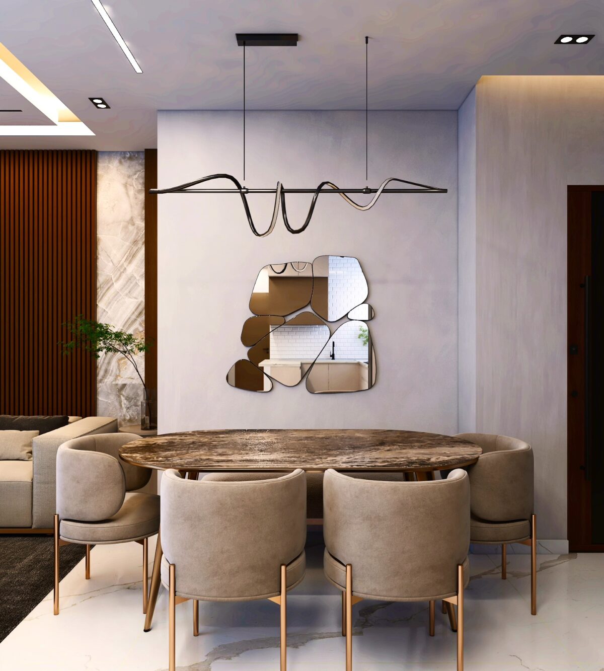 أول حاجة بتركّز عليها Jazz Design Co. هي فهم احتياجات العريس والعروسة كويس قبل ما يبدأ الشغل. كل بيت ليه طبيعة مختلفة، علشان كده دراسة المساحة وتقسيم الغرف بيتم بشكل مدروس. توزيع الأثاث، أماكن الإضاءة، وتنظيم المساحات بيتحسبوا بدقة علشان كل جزء في البيت يكون عملي ومريح.