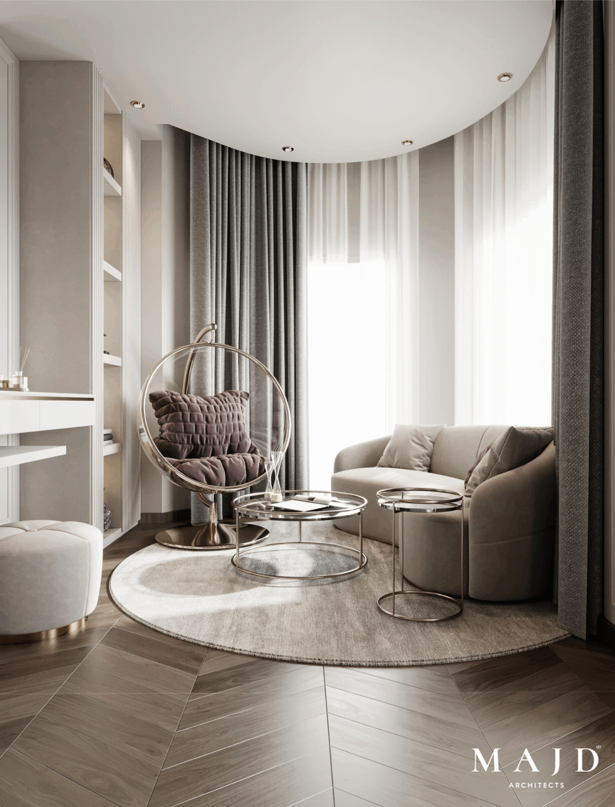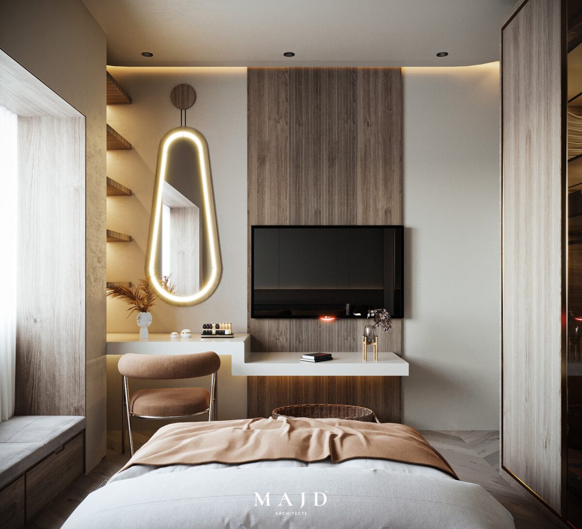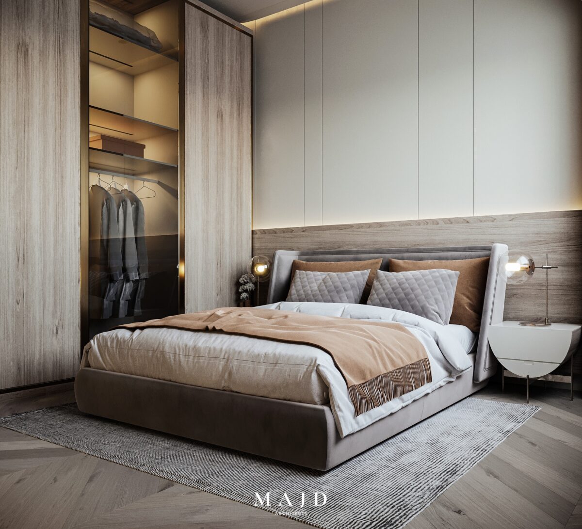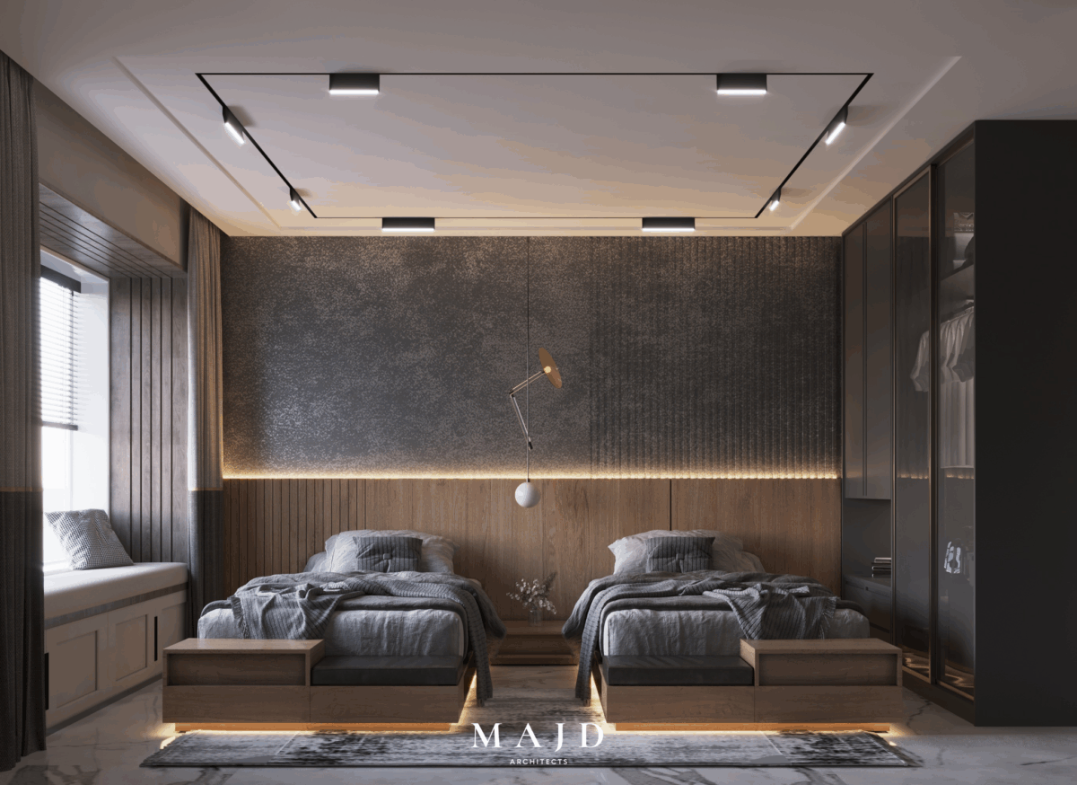 MAJD Architects بتهتم إن التصميم يكون بسيط وواضح، بعيد عن التعقيد أو التفاصيل الكتير اللي ممكن تتعب مع الوقت. الخطوط المعمارية بتكون نظيفة ومتناسقة، واختيار الألوان بيكون مناسب للمساحة علشان المكان يبان أوسع وأهدى. التناسق بين العناصر المختلفة بيدي إحساس بالترتيب والاستقرار، وده مهم جدًا في بداية حياة جديدة.