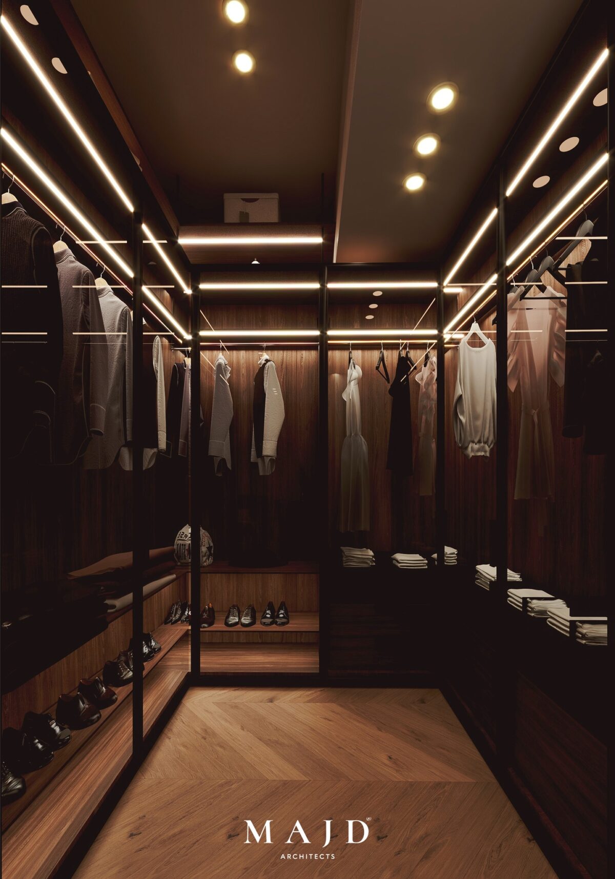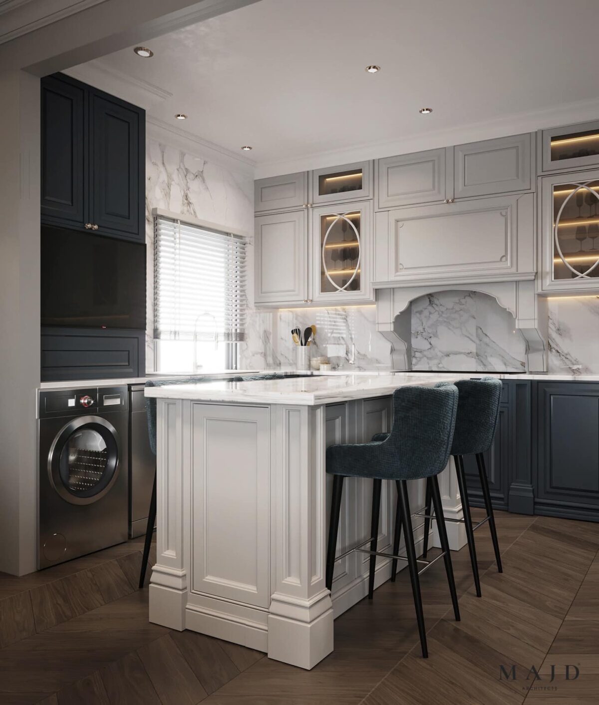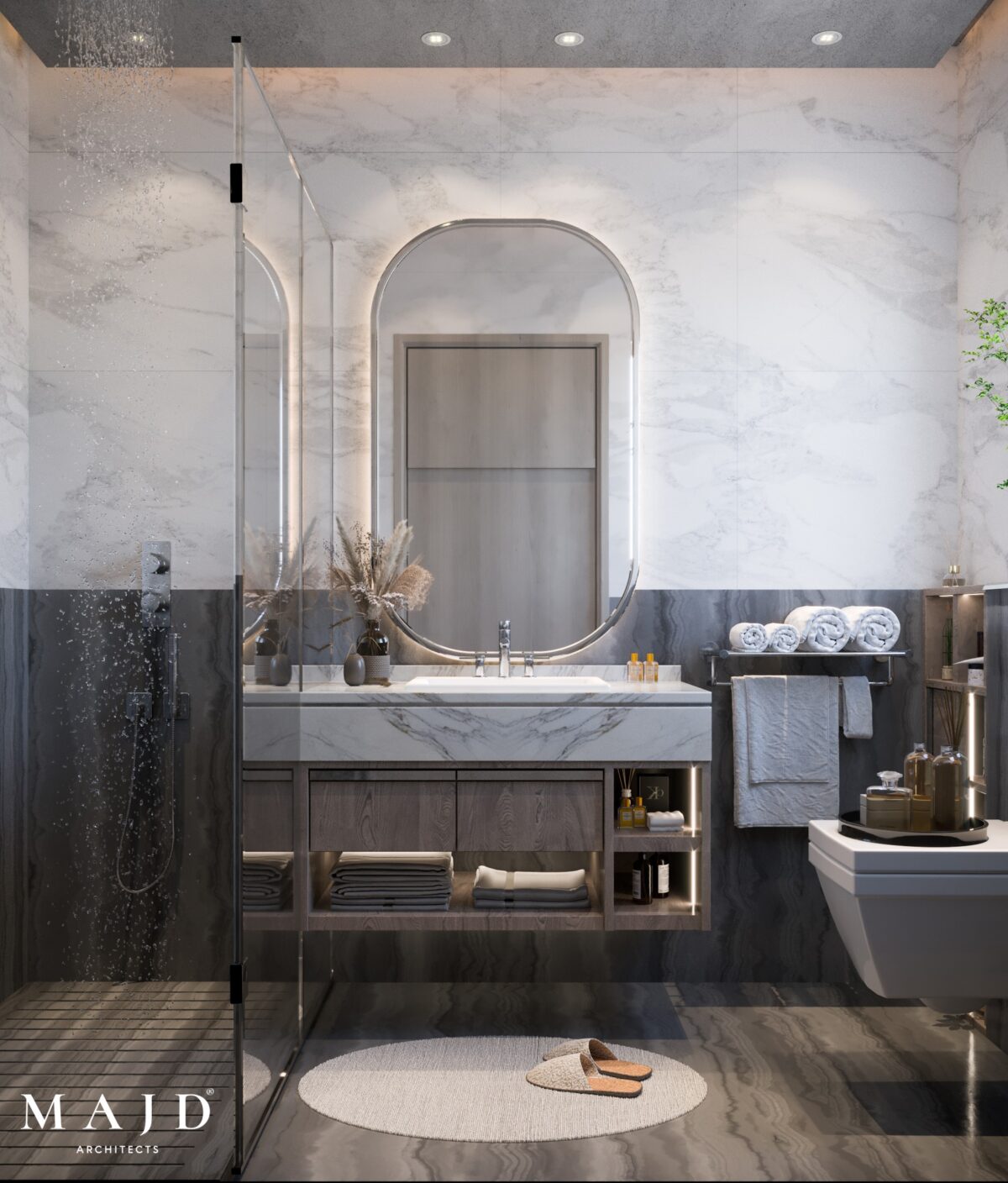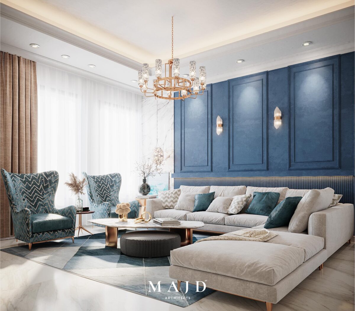 MAJD Architects بتهتم إن التصميم يكون بسيط وواضح، بعيد عن التعقيد أو التفاصيل الكتير اللي ممكن تتعب مع الوقت. الخطوط المعمارية بتكون نظيفة ومتناسقة، واختيار الألوان بيكون مناسب للمساحة علشان المكان يبان أوسع وأهدى. التناسق بين العناصر المختلفة بيدي إحساس بالترتيب والاستقرار، وده مهم جدًا في بداية حياة جديدة.