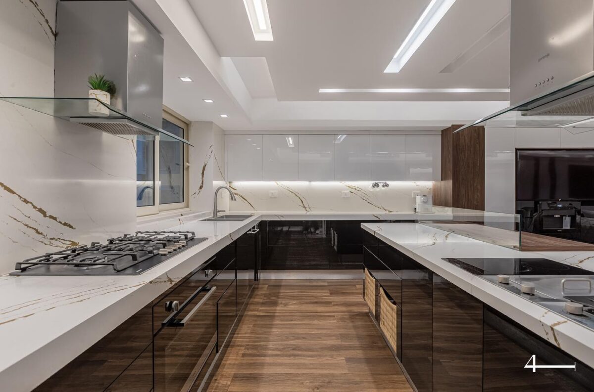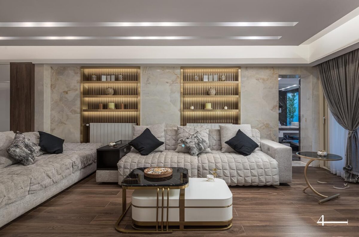 كمان كل تفصيلة في التصميم بيكون ليها هدف واضح، مفيش عنصر موجود لمجرد الشكل. التفكير دايمًا بيكون في سهولة الحركة وتنظيم المساحات علشان البيت يفضل مرتب ومريح مع الوقت.