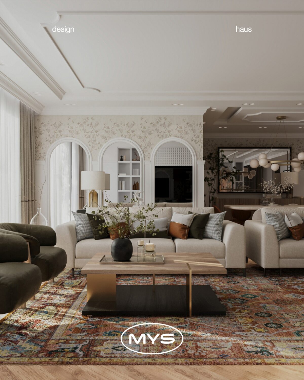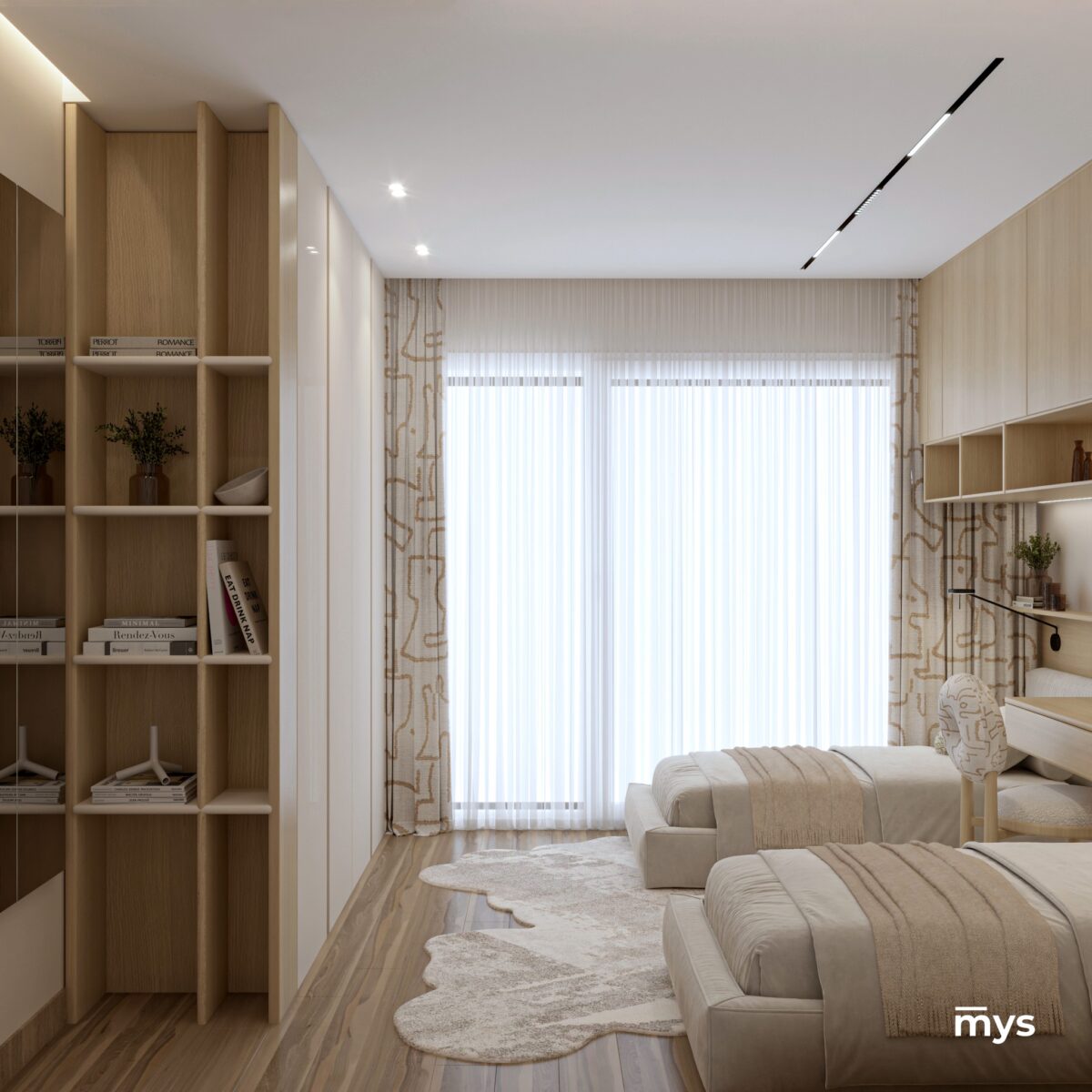 MYS Design Haus بتهتم إن التصميم يكون بسيط ومتوازن، بعيد عن الزحمة أو التفاصيل الكتير اللي ممكن تتعب مع الوقت. اختيار الألوان بيكون هادي ومريح للعين، يساعد إن المكان يبان أوسع وأهدى. التناسق بين الخامات واللمسات النهائية بيدي إحساس بالترتيب والاستقرار، وده مهم جدًا في بداية حياة جديدة.