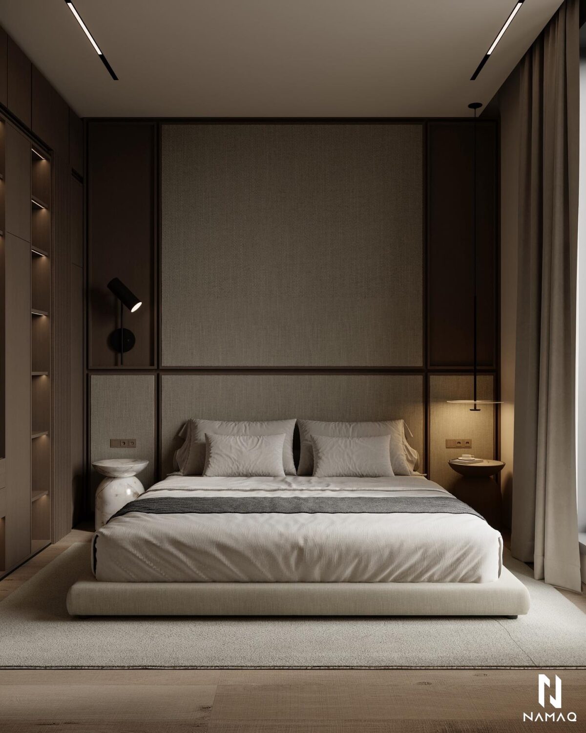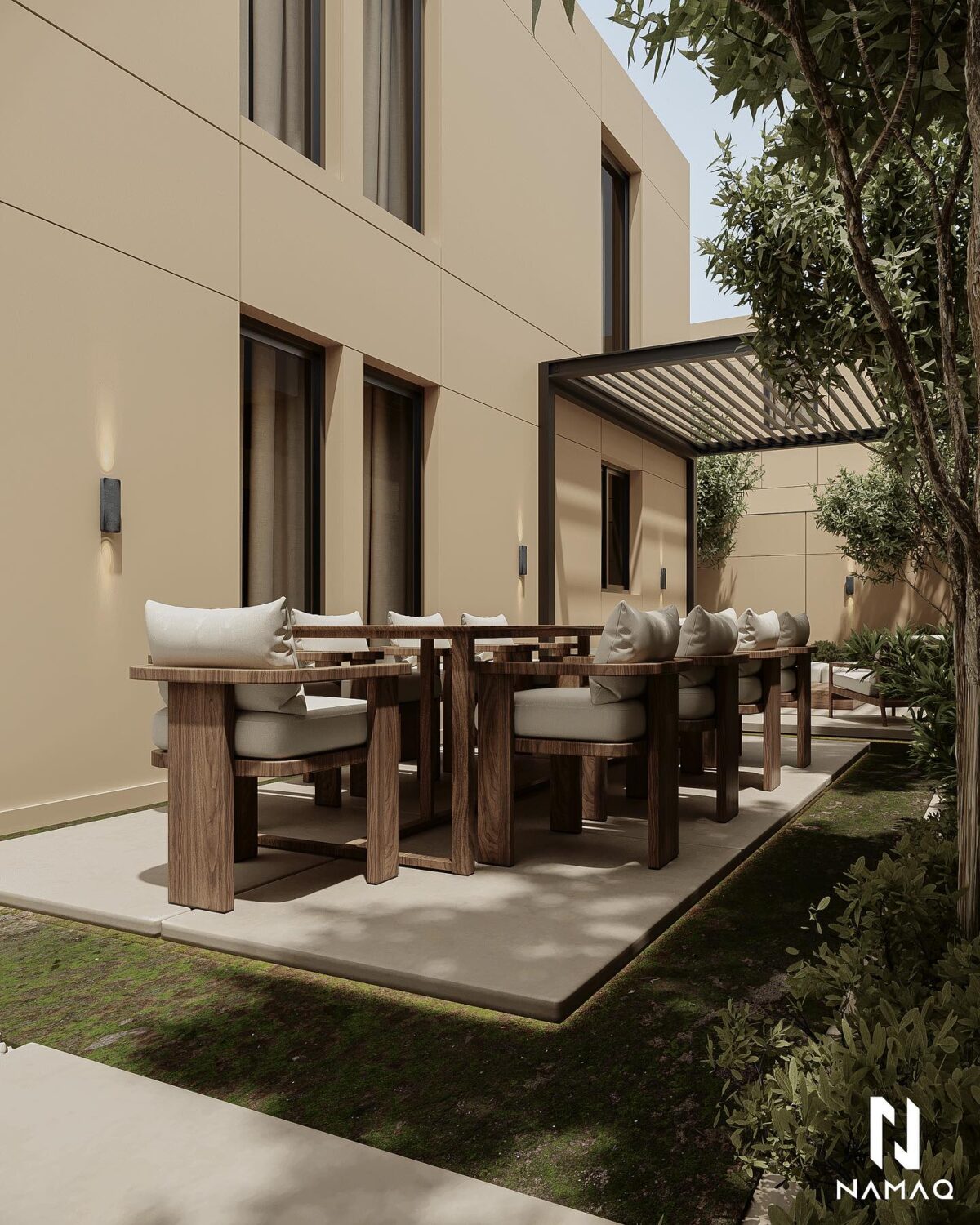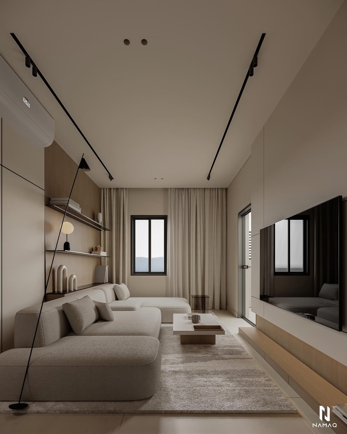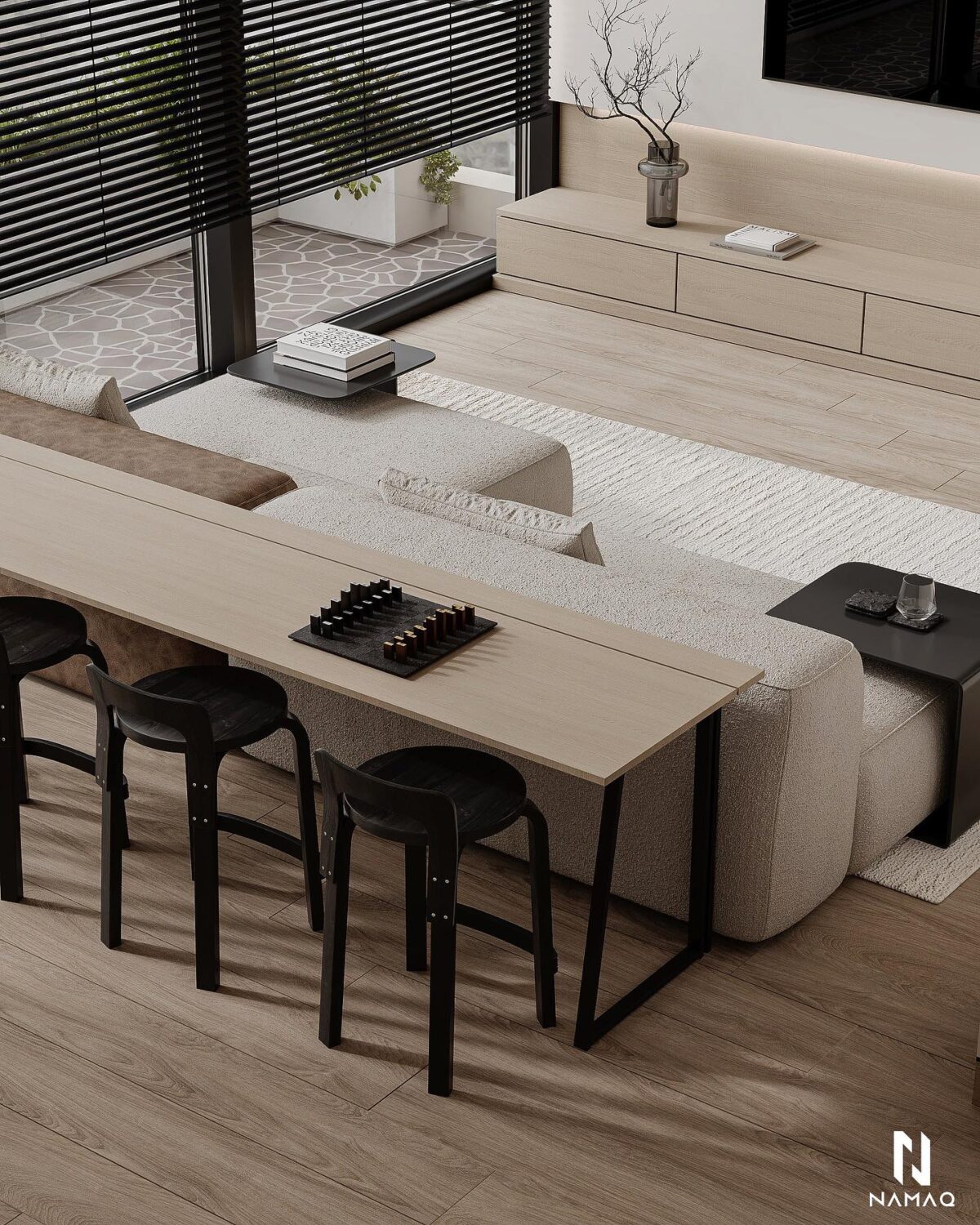 NAMAQ ARCHITECTS بتهتم إن التصميم يكون متوازن وبعيد عن المبالغة. الفكرة دايمًا إن البيت يطلع بسيط وعملي ويعيش مع الوقت من غير ما يحسّس أصحابه إنه محتاج تغيير سريع. اختيار الألوان والخطوط المعمارية بيكون هادي ومريح للعين، وده بيساعد إن الإحساس بالمكان يبقى أوسع وأهدى.