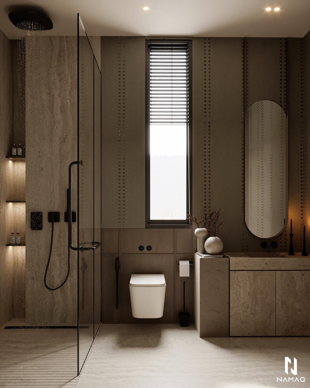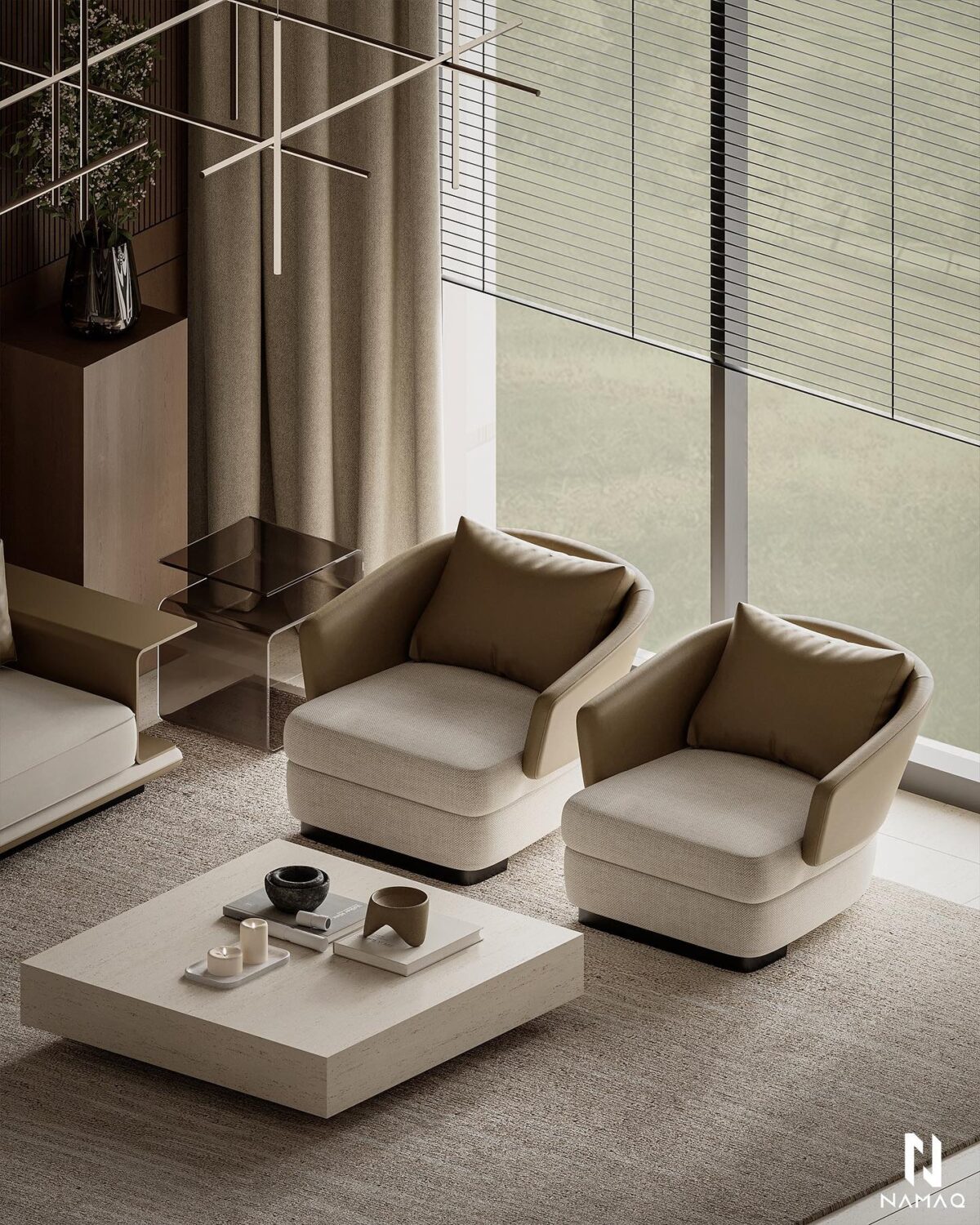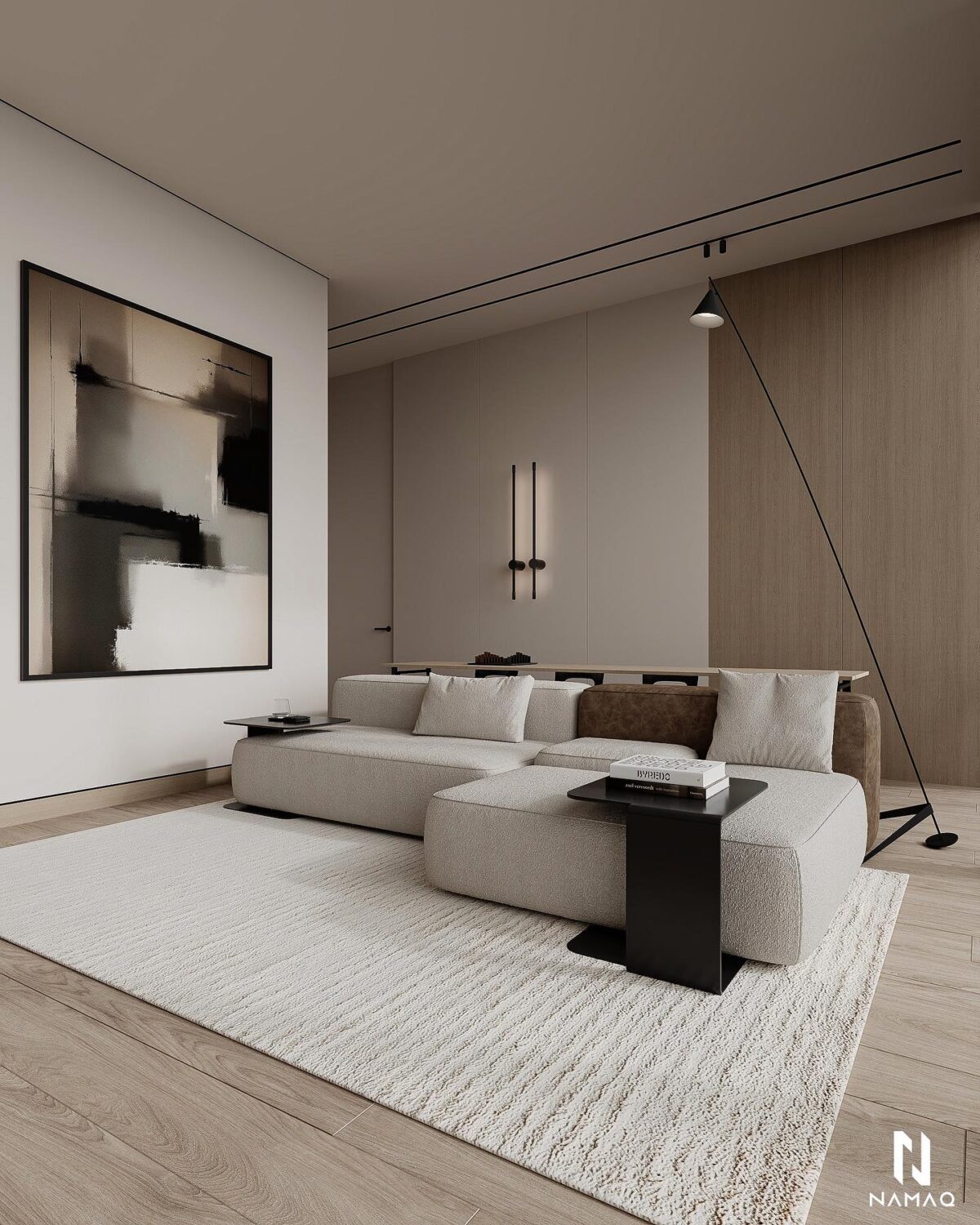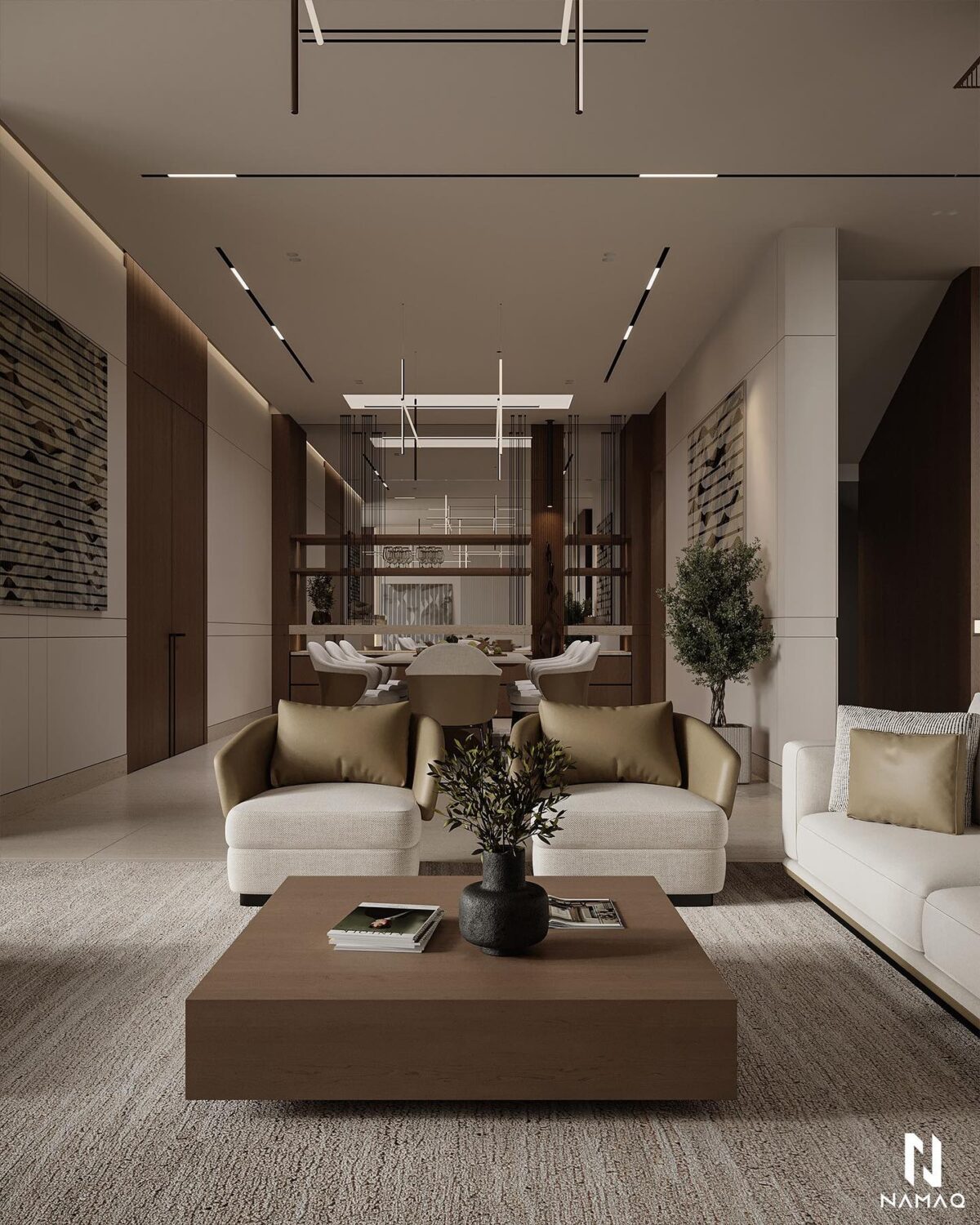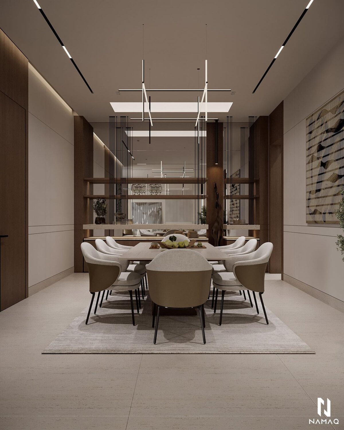 NAMAQ ARCHITECTS بتهتم إن التصميم يكون متوازن وبعيد عن المبالغة. الفكرة دايمًا إن البيت يطلع بسيط وعملي ويعيش مع الوقت من غير ما يحسّس أصحابه إنه محتاج تغيير سريع. اختيار الألوان والخطوط المعمارية بيكون هادي ومريح للعين، وده بيساعد إن الإحساس بالمكان يبقى أوسع وأهدى.