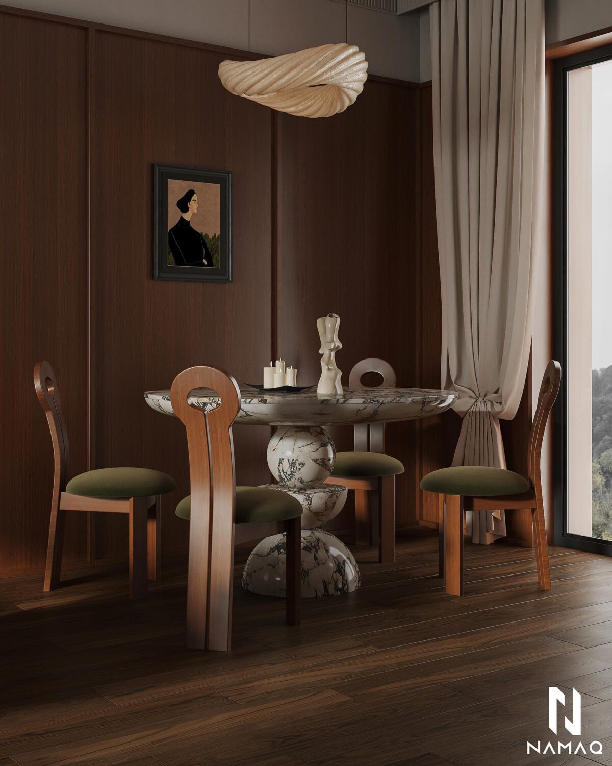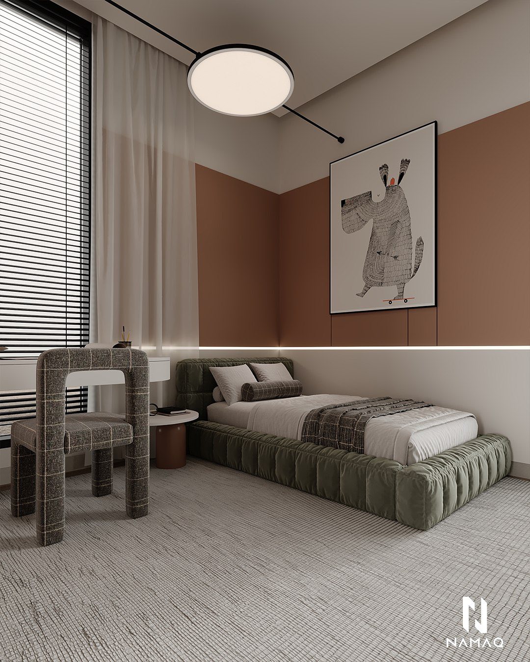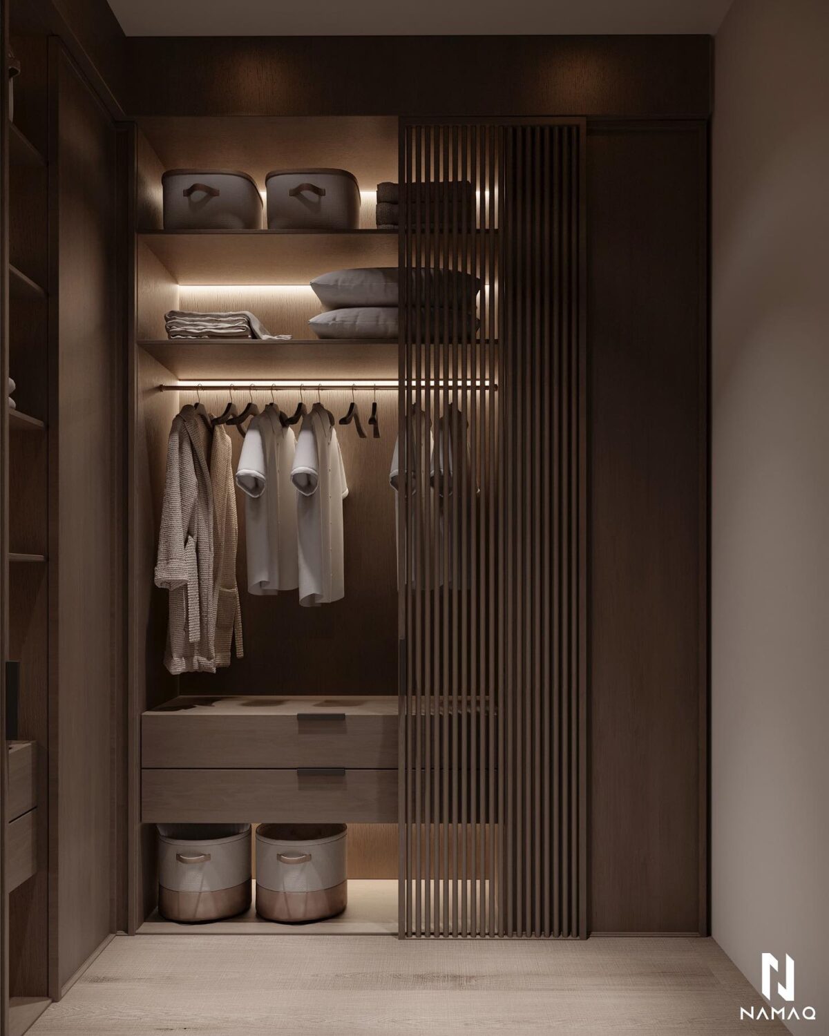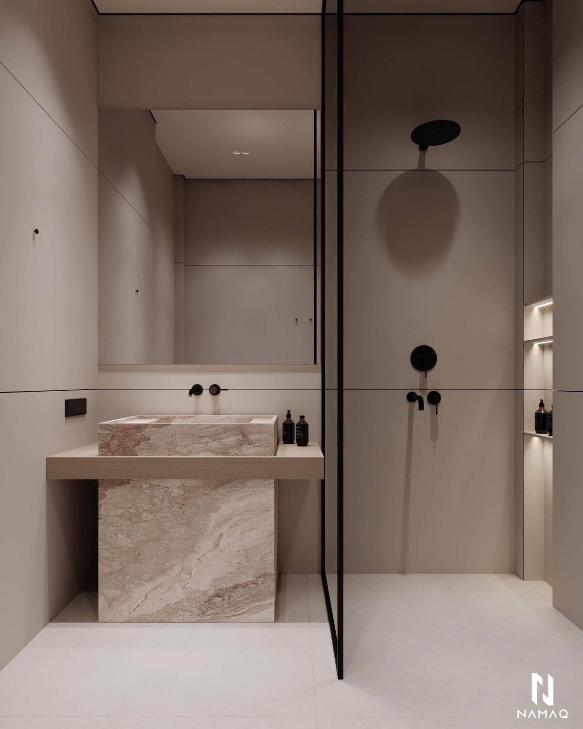 NAMAQ ARCHITECTS بتهتم إن التصميم يكون متوازن وبعيد عن المبالغة. الفكرة دايمًا إن البيت يطلع بسيط وعملي ويعيش مع الوقت من غير ما يحسّس أصحابه إنه محتاج تغيير سريع. اختيار الألوان والخطوط المعمارية بيكون هادي ومريح للعين، وده بيساعد إن الإحساس بالمكان يبقى أوسع وأهدى.