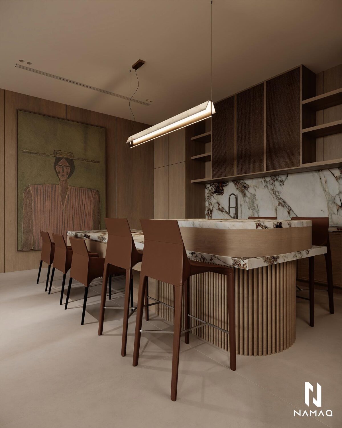 كمان اختيار الخامات بيكون بعناية، لأن الخامة الصح بتفرق في الشكل وفي الاستخدام اليومي. NAMAQ ARCHITECTS بتركّز على خامات تتحمّل الاستعمال وتكون مناسبة لطبيعة الحياة اليومية، علشان البيت يفضل مريح ومستقر مع الوقت.