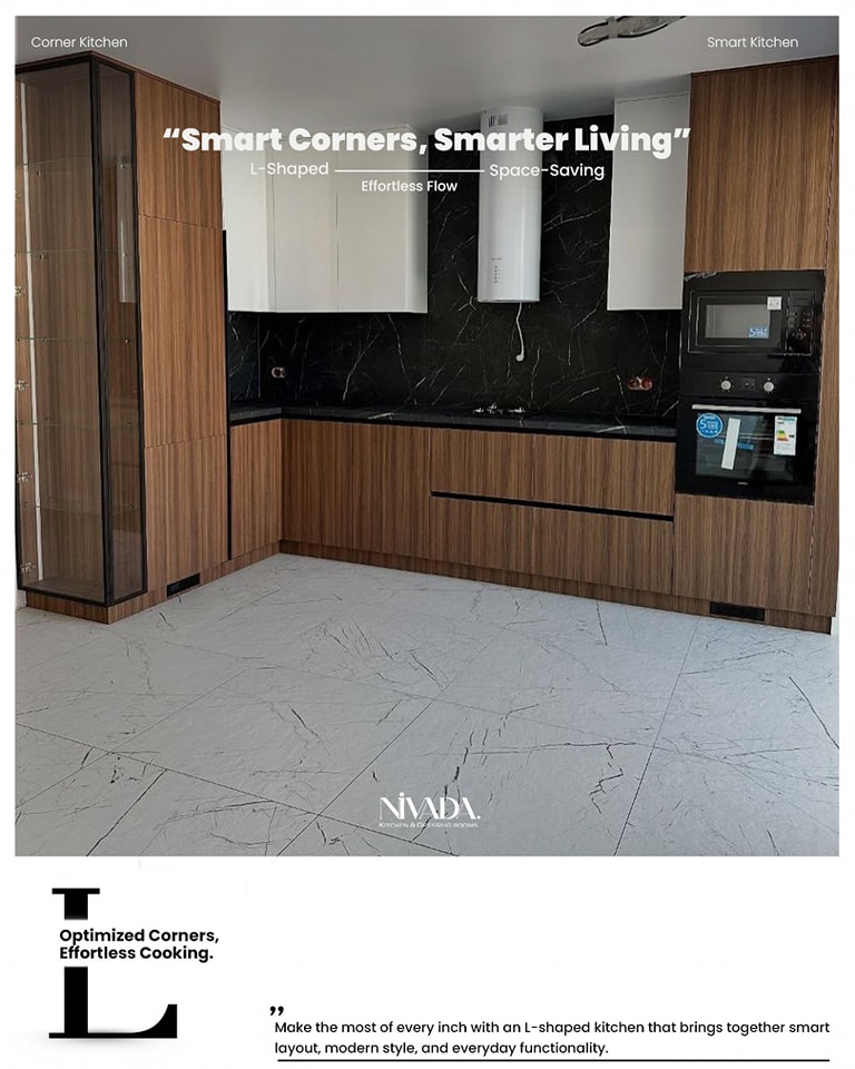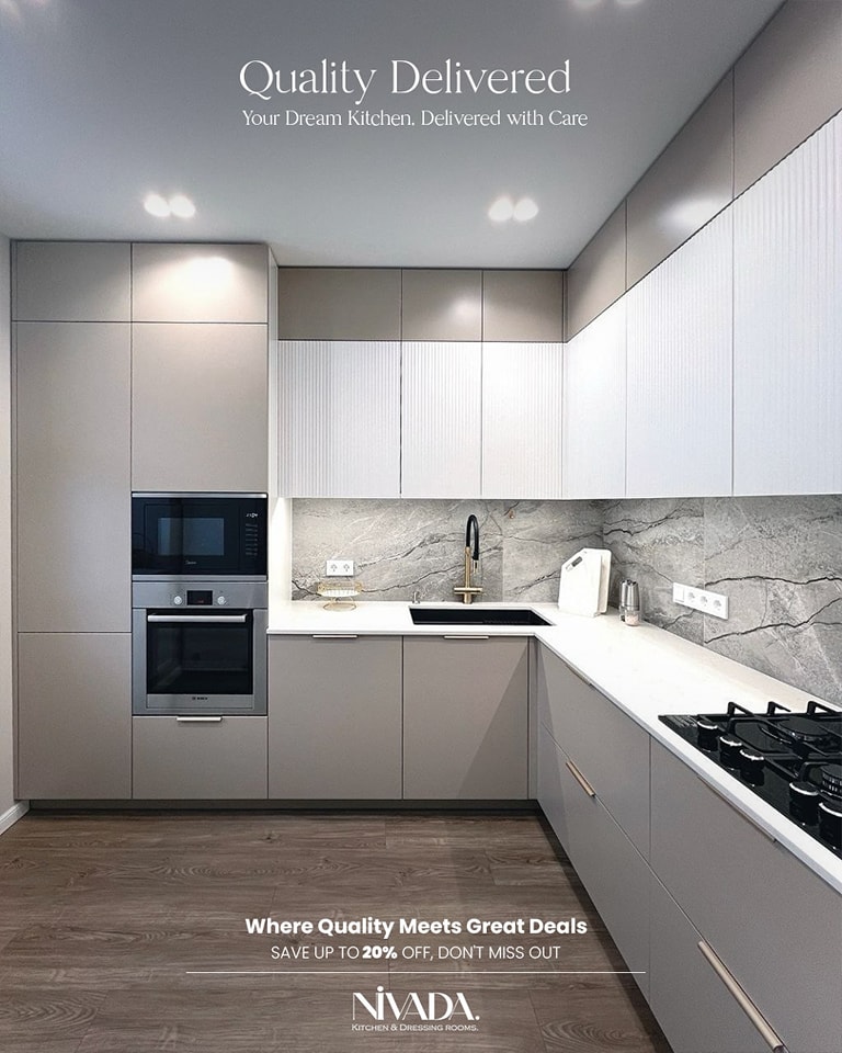 NIVADA بتركّز على اختيار خامات عملية تتحمّل الاستخدام اليومي وتكون سهلة في التنضيف، لأن البيت الجديد محتاج حلول تعيش مع الوقت ومش تسبب مشاكل بعد السكن. الراحة هنا مش بس في الشكل، لكن في إن المكان يفضل عملي ومريح في العيشة اليومية.
