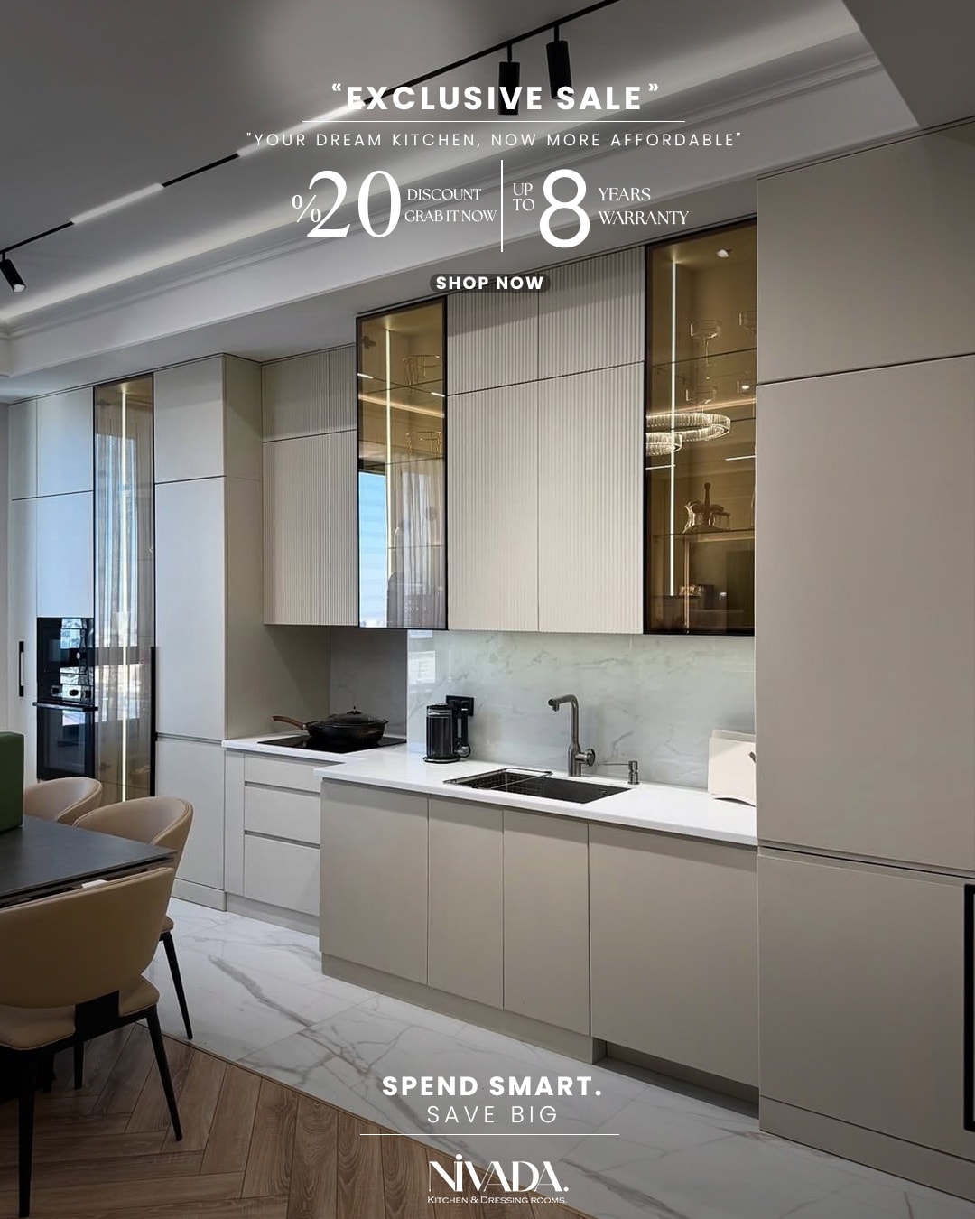 NIVADA بتهتم إن التصميم يكون بسيط ومتوازن، بعيد عن الزحمة أو التفاصيل اللي ممكن تتعب مع الوقت. اختيار الألوان بيكون هادي ومريح للعين، يساعد إن المكان يبان أوسع وأهدى. التناسق بين الخامات واللمسات النهائية بيدي إحساس بالترتيب والتنظيم، وده مهم جدًا في بداية حياة جديدة.