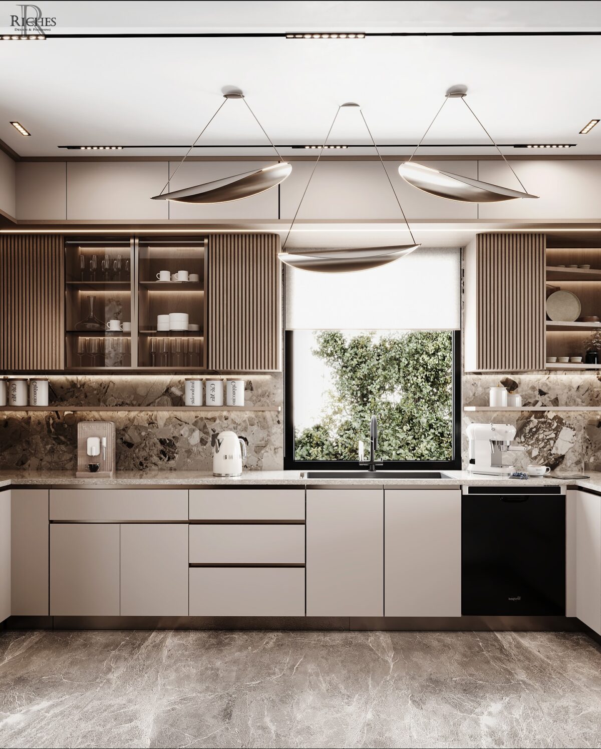 Riches For Design & Finishing بتركّز على اختيار خامات عملية تتحمّل الاستخدام اليومي وتكون سهلة في التنضيف، لأن البيت الجديد محتاج حلول تعيش مع الوقت ومش تسبب مشاكل بعد السكن. الراحة هنا مش بس في الشكل، لكن في إن المكان يفضل عملي ومريح في العيشة اليومية.