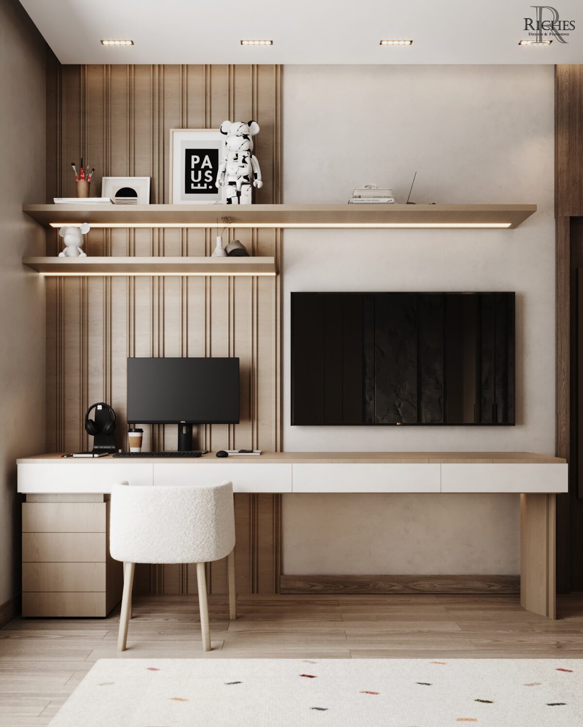 في جانب التصميم، Riches For Design & Finishing بتركّز على البساطة المتوازنة، بعيد عن الزحمة أو التفاصيل الكتير اللي ممكن تتعب مع الوقت. اختيار الألوان بيكون هادي ومريح للعين، يساعد إن المكان يبان أوسع وأهدى. التناسق بين الخامات واللمسات النهائية بيدي إحساس بالترتيب والاستقرار، وده مهم جدًا في بداية حياة جديدة.