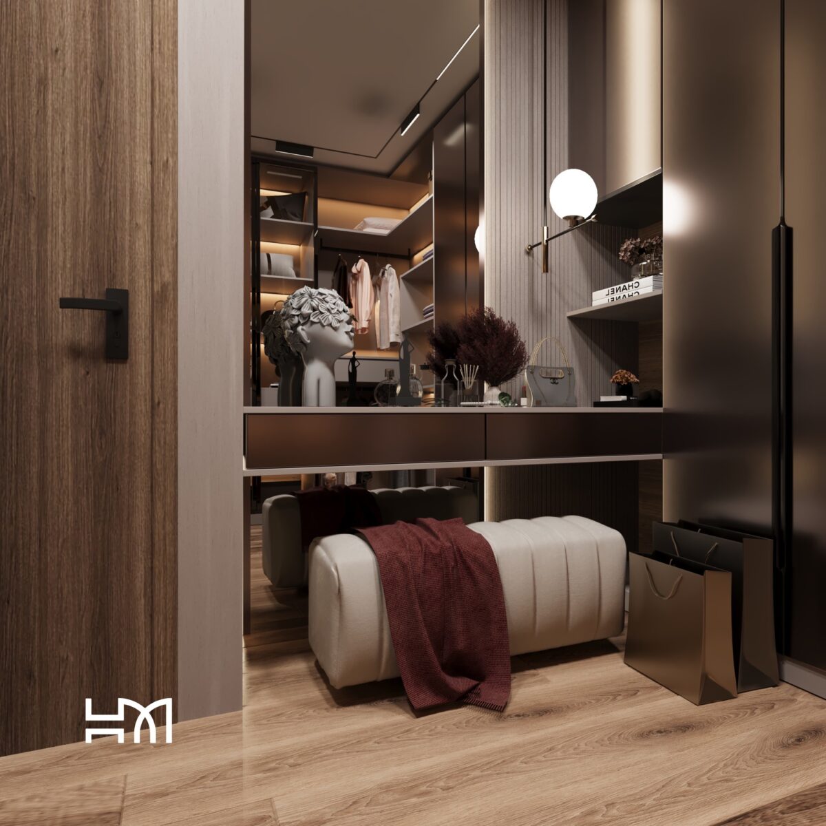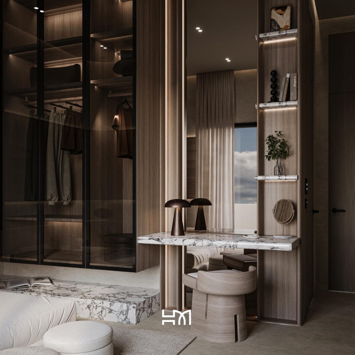 كمان كل تفصيلة في التصميم بيكون ليها هدف واضح، مفيش عنصر موجود لمجرد الشكل. التفكير دايمًا بيكون في سهولة الحركة وتنظيم المساحات علشان البيت يفضل مرتب ومريح مع الوقت.