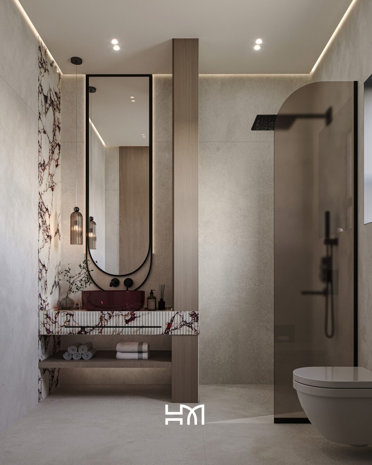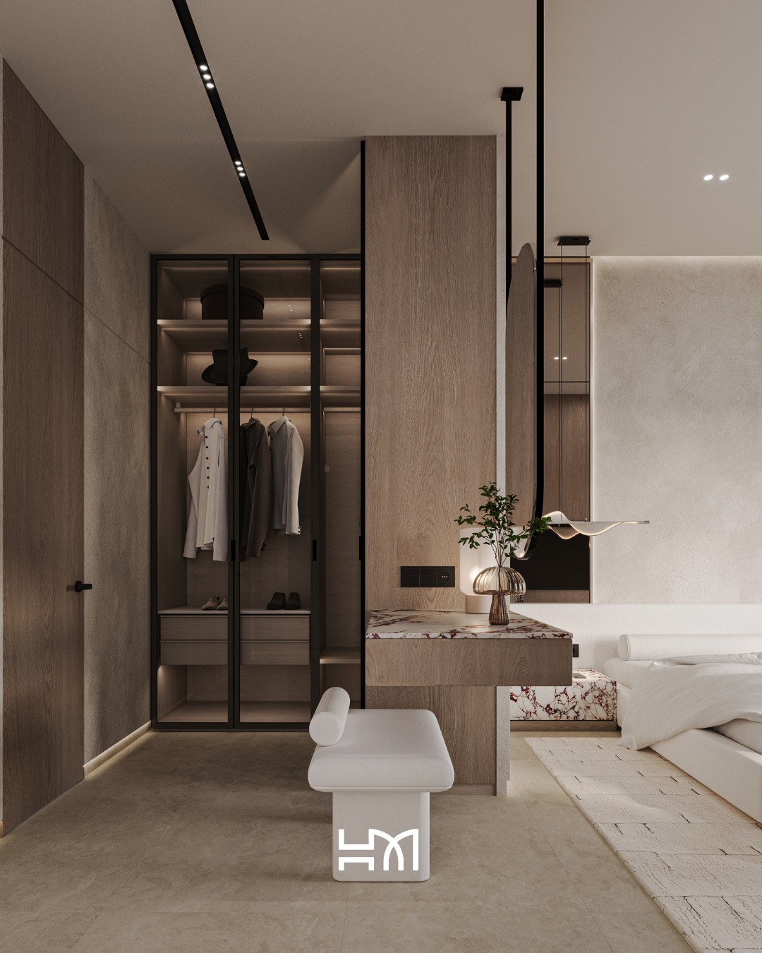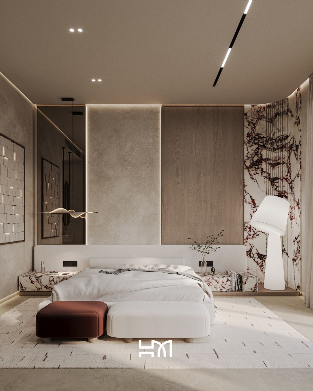 Hazem Mansour بيهتم إن التصميم يكون بسيط ومتوازن، بعيد عن الزحمة أو التفاصيل الكتير اللي ممكن تتعب مع الوقت. اختيار الألوان بيكون هادي ومريح للعين، يساعد إن المكان يبان أوسع وأهدى. التناسق بين الخامات واللمسات النهائية بيدي إحساس بالترتيب والاستقرار، وده مهم جدًا في بداية حياة جديدة.