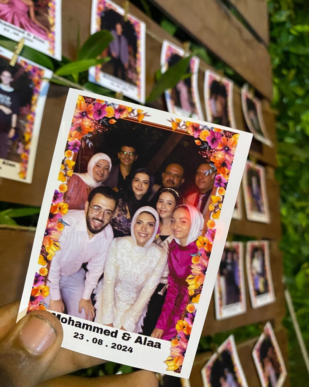 الصور المطبوعة بيكون ليها كمان نسخة رقمية بتتجمع في ألبوم إلكتروني خاص بالعروسين. بعد الفرح، يقدروا يحتفظوا بالألبوم أو يشاركوه مع الضيوف على السوشيال ميديا.