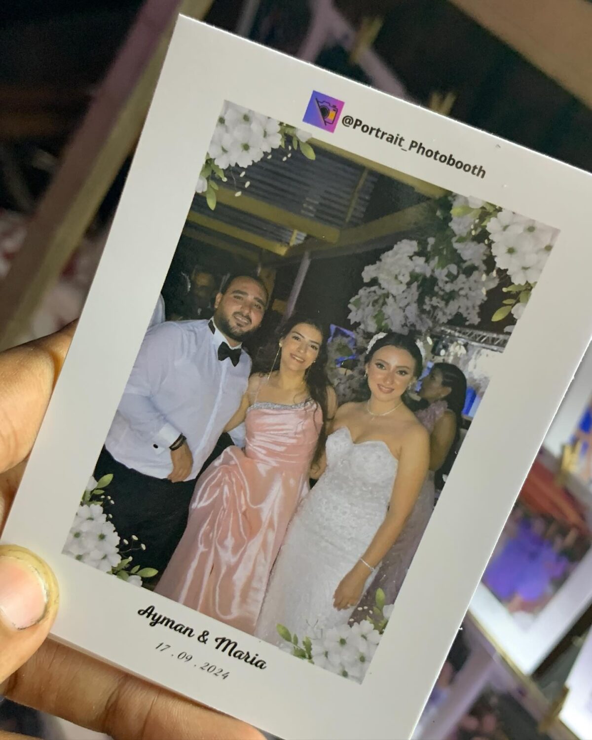 في الأفراح والمناسبات الراقية، التصوير مش مجرد وسيلة لتوثيق اليوم، لكنه تجربة بتكمل أجواء الفرح وتعكس جمال اللحظة. وده اللي بتميز بيه Portrait Photobooth اللي بتقدملك تجربة تصوير مختلفة تمامًا عن أي فوتوبوث عادي، لأنها بتركز على التفاصيل والجمال الطبيعي في كل لقطة.