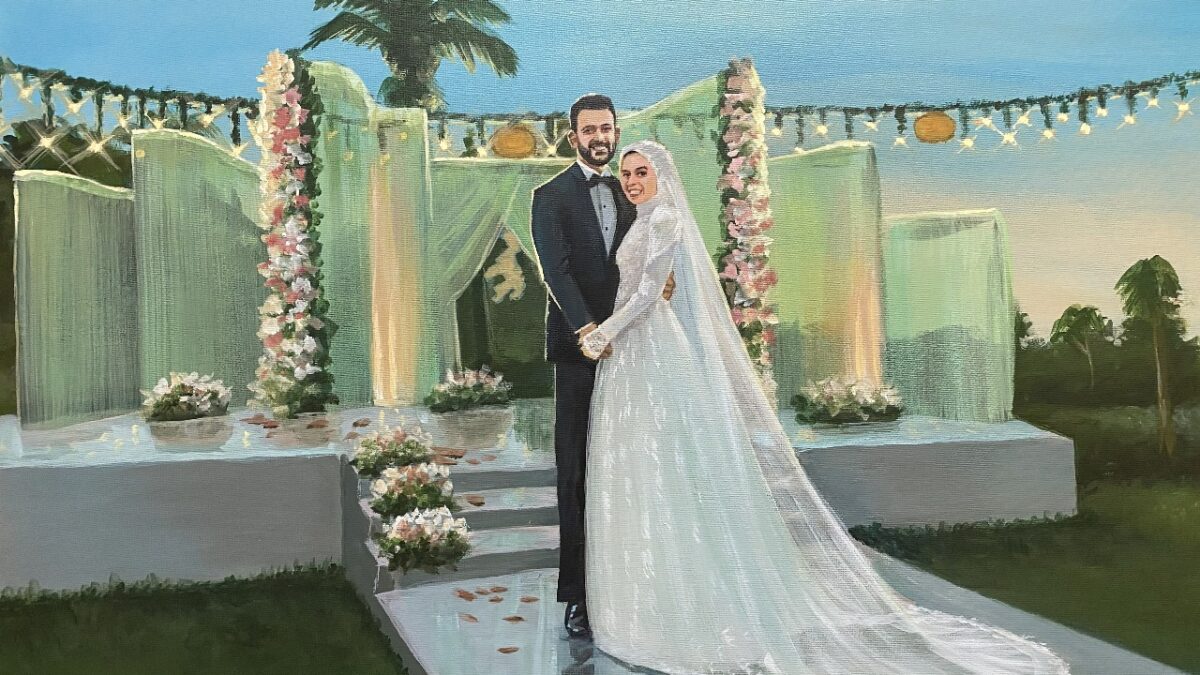 اللوحة بتكون بحجم مناسب للعرض في البيت سواء في الريسيبشن أو غرفة المعيشة، وبتتحول لذكرى بصرية مختلفة عن الصور الفوتوغرافية أو الفيديو. كل ضيف بيبقى منبهر وهو شايف الفنان بيرسم مباشرة وبيحوّل تفاصيل الفرح للوحة بألوانه وستايله المميز.