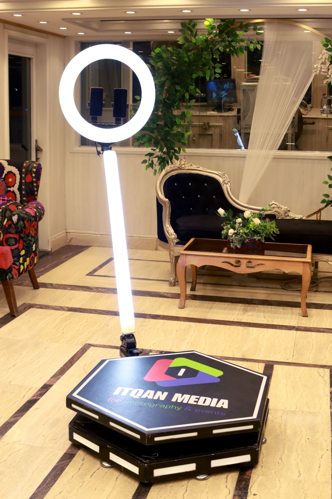 خدمة الفوتو بوث بتكون موجودة بشكل بارز في مكان الاحتفال سواء في قاعة افراح كبيرة او في الاستقبال في البيت وبينضبط مكانها بعناية عشان تكون خلفية الصور مناسبة وتشد انتباه الضيوف وتخليهم يقفوا قدام الكاميرا وانهم ياخدوا صور انستاغرام ستايل في لحظات بسيطة وممتعة