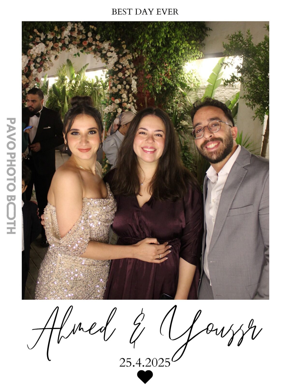 احجز مع Pavo PhotoBooth وأضف لمسة فريدة ليوم فرحك، خليك متأكد إن كل لحظة ضحك وهزار هتفضل محفوظة في صورة ورقية وفي ألبوم إلكتروني يفضّل معاكو طول العمر.