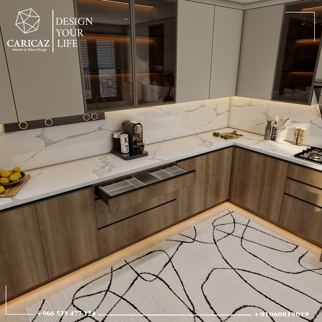 المطبخ والحمام من أكتر الأماكن اللي Caricaz بتركز عليها، لأنهم مساحات استخدام يومي وبتحتاج تنفيذ عملي. الأرضيات والحوائط بتتعمل بخامات مناسبة وسهلة في الاستخدام، مع الاهتمام بالعزل في الأماكن اللي بتتعرض للمياه علشان يتفادى أي مشاكل مستقبلية. تخطيط المطبخ بيكون عملي علشان الحركة تبقى سهلة وأماكن الأجهزة والتخزين تكون مناسبة.