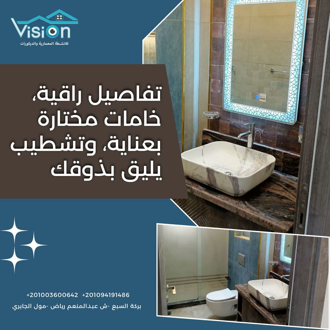 كمان اختيار الخامات بيكون بعناية، لأن الخامة الصح بتفرق في الشكل وفي الاستخدام اليومي. Vision بتركّز على خامات تتحمّل الاستعمال وتكون سهلة في التنضيف، علشان البيت يفضل عملي ومريح مع الوقت. الراحة هنا مش بس في المنظر، لكن في سهولة التعامل مع المكان بعد السكن.