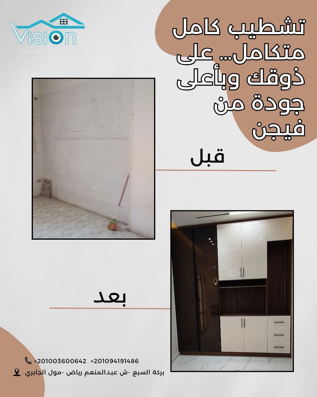 Vision من الجهات اللي ناس كتير بترجع لها وهي بتجهز بيتها قبل الزواج، خصوصًا اللي بيدوروا على شغل منظم ورؤية واضحة من غير تعقيد أو قرارات متخبطة. تجهيز البيت مرحلة بتحتاج هدوء وتخطيط، ووجود جهة فاهمة الاحتياج من البداية بيفرق جدًا في شكل التجربة كلها وبيخلّيها أسهل وأهدى.
