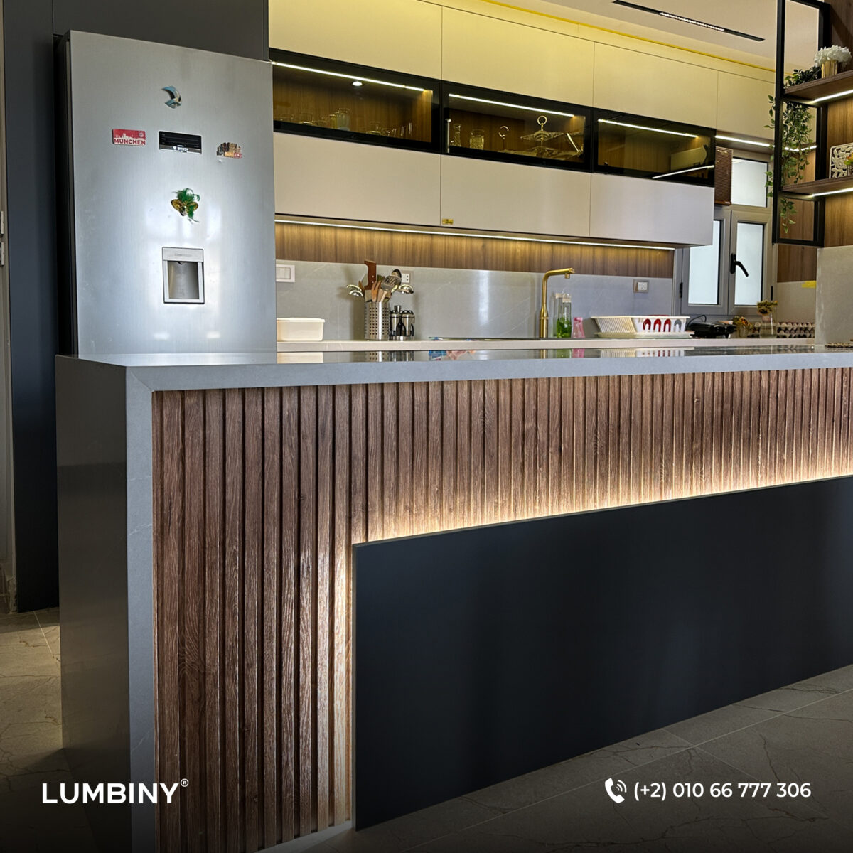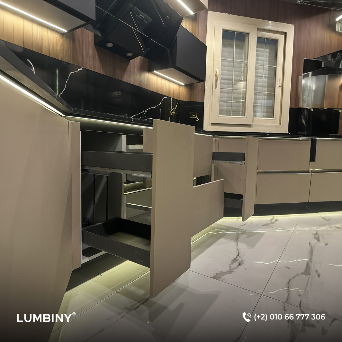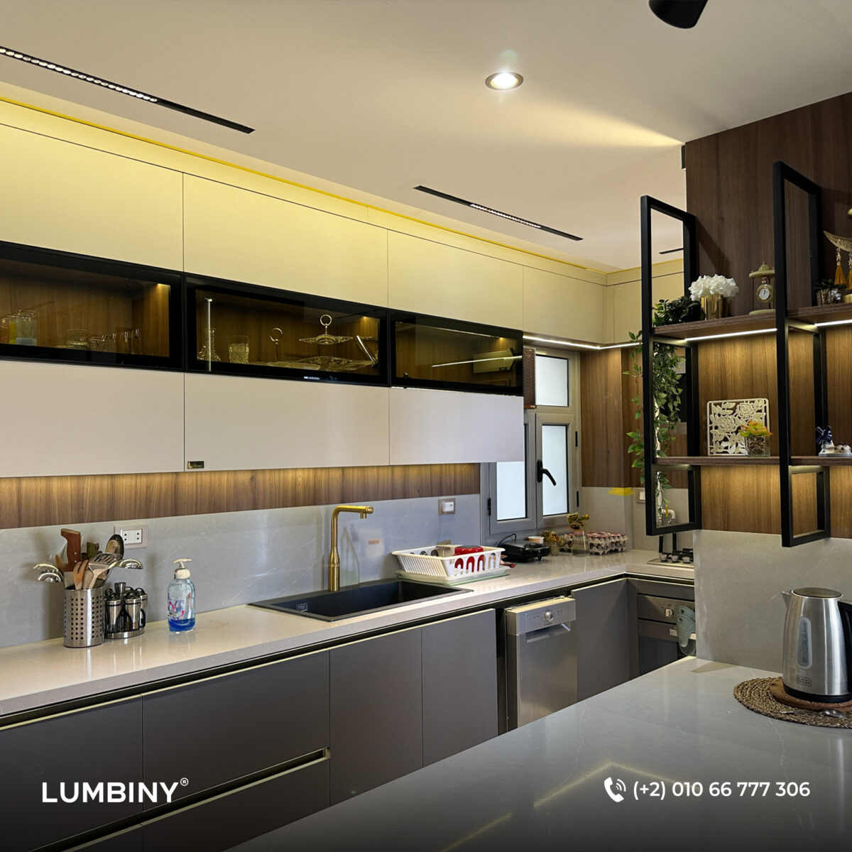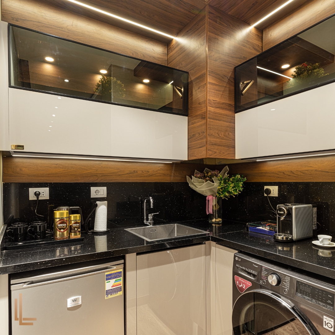 - حلول الأثاث المدمج: تصميم خزائن مطابخ وغرف نوم ووحدات تخزين مدمجة نفذتها Lumbiny بمواصفات حسب الطلب وجودة عالية.
