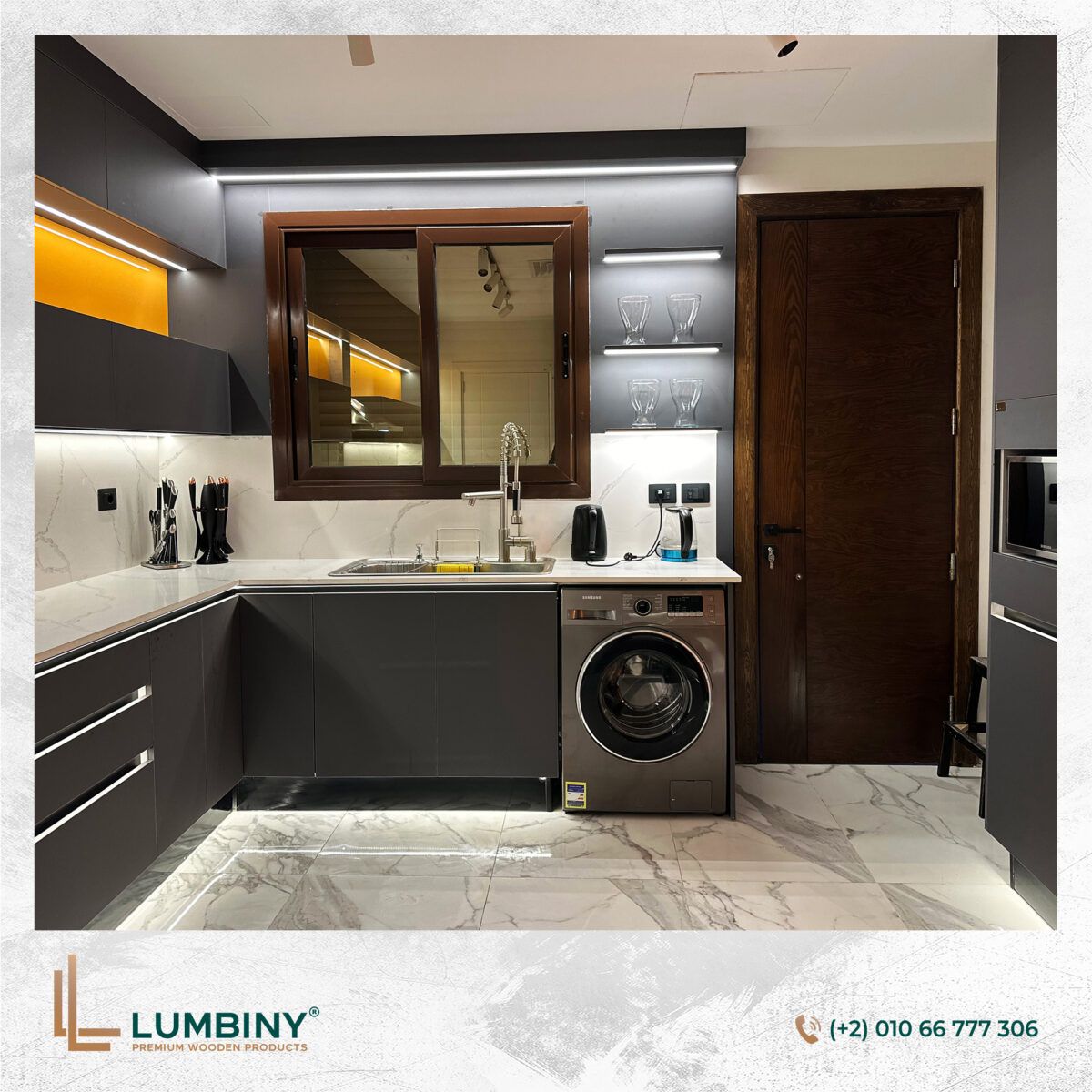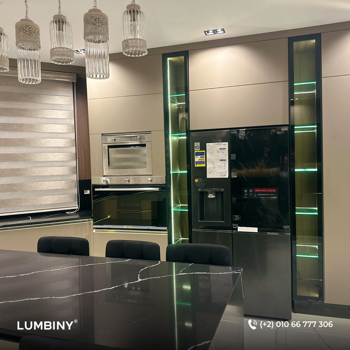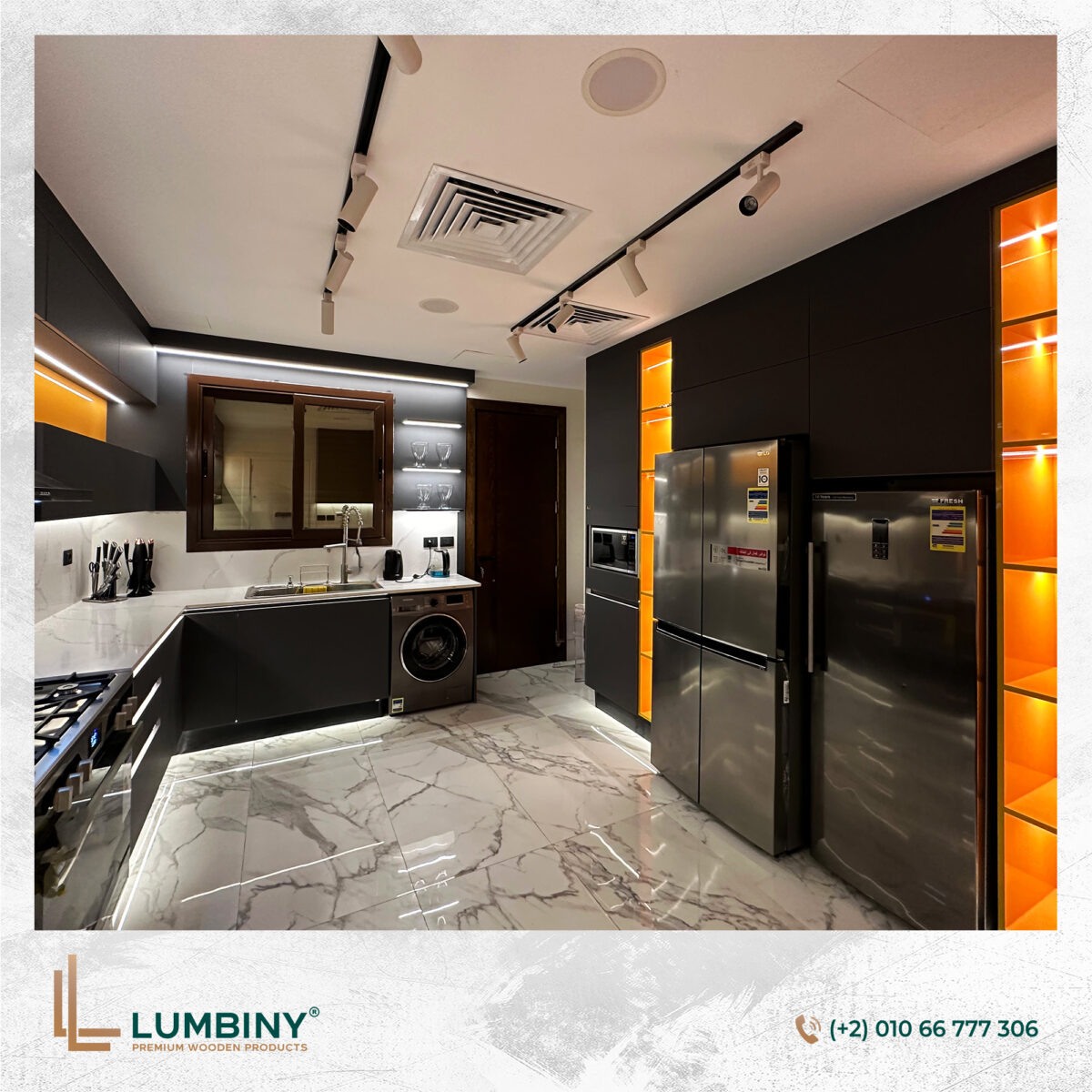 - حلول الأثاث المدمج: تصميم خزائن مطابخ وغرف نوم ووحدات تخزين مدمجة نفذتها Lumbiny بمواصفات حسب الطلب وجودة عالية.