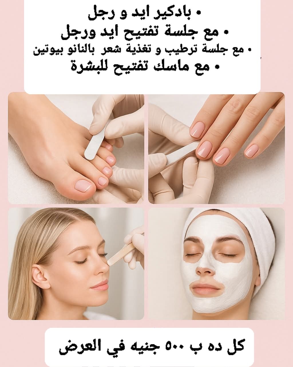 العناية بالأظافر هناك على أعلى مستوى كمان. المانيكير والباديكير بيتعملوا باحتراف ونظافة، وفيه جلسات عناية باليدين والقدمين بزيوت وكريمات فاخرة بتخلي الجلد ناعم ومترطب. كل حاجة هناك بتتعمل بدقة ونظام يخلي التجربة ممتعة ومريحة.