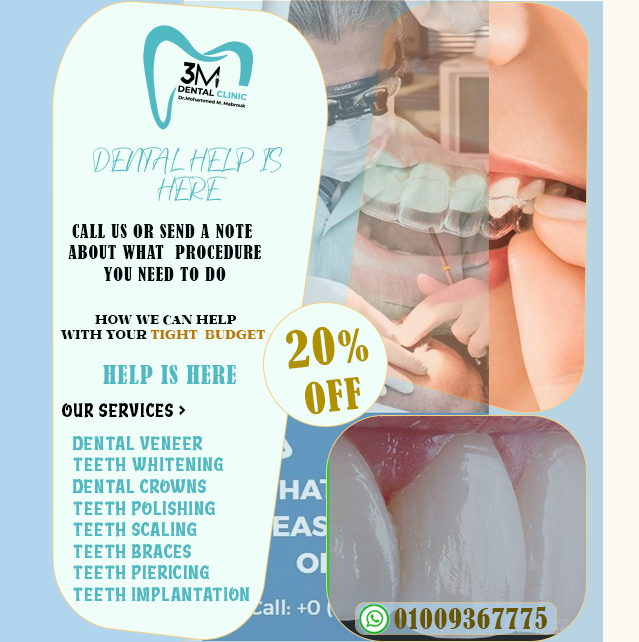 دكتور محمد مبروك بيجمع بين الخبرة والدقة والاهتمام براحة المريض، وده بيخلي العيادة مكان مناسب لأي حد عايز يحافظ على صحة أسنانه أو يجهز ابتسامته لمناسبة مهمة. النتيجة في النهاية بتكون ابتسامة صحية وطبيعية تدي ثقة كبيرة في النفس وتفضل مع صاحبها سنين طويلة.