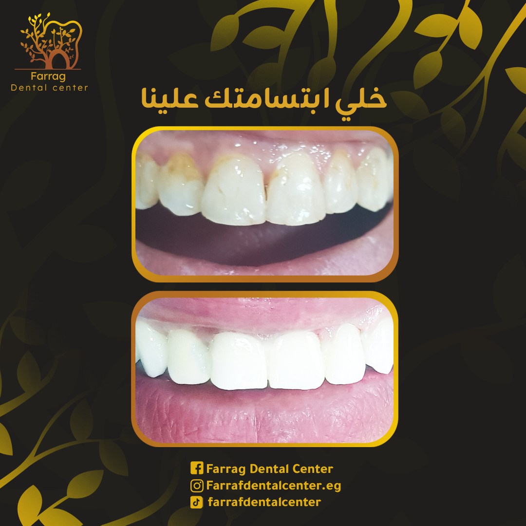 من أهم الخدمات اللي بيقدّمها Farrag Dental Center جلسات تنظيف الأسنان وإزالة الجير، ودي خطوة ضرورية للحفاظ على صحة الفم ومنع مشاكل اللثة. تنظيف الأسنان بيساعد على إزالة البقع والترسبات اللي بتتراكم مع الوقت وبتأثر على لون الأسنان، وده بيحسّن شكل الابتسامة بشكل ملحوظ. الخدمة دي مهمة جدًا لأي حد داخل على مناسبة زي الفرح أو كتب الكتاب، لأن الابتسامة النضيفة بتظهر بشكل أجمل في الصور وبتدي ثقة أكبر في النفس.