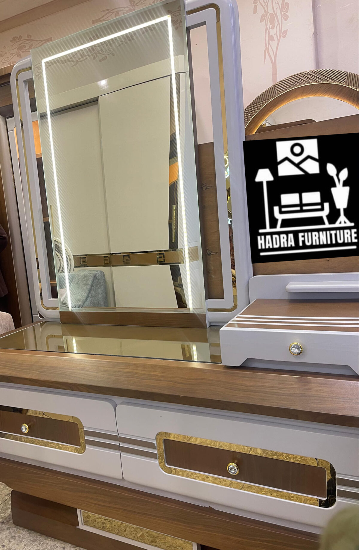 لما تيجي على ركن أوض النوم هتلاقي السرير Low-Profile خشب متين وتحت قاعدته درج تخزين مخفي يناسب الناس اللي بتحب تنظيم مساحات بيتها. الدولاب عند حضرة بواجهات جرّارة أو فتحات مرايا كاملة، وده بيكبر الأوضة بصرياً. التنظيم الداخلي متقسّم بذكاء بين رفوف وأدراج وحِمالات علشان تيجي وتعبّي كل حاجة في مكانها بسهولة. التسريحة والكومودينو بيشتغلوا بنظام Soft-Close من غير دوشة، ومساحاتهم كافية للأباجورة والمستلزمات الشخصية.