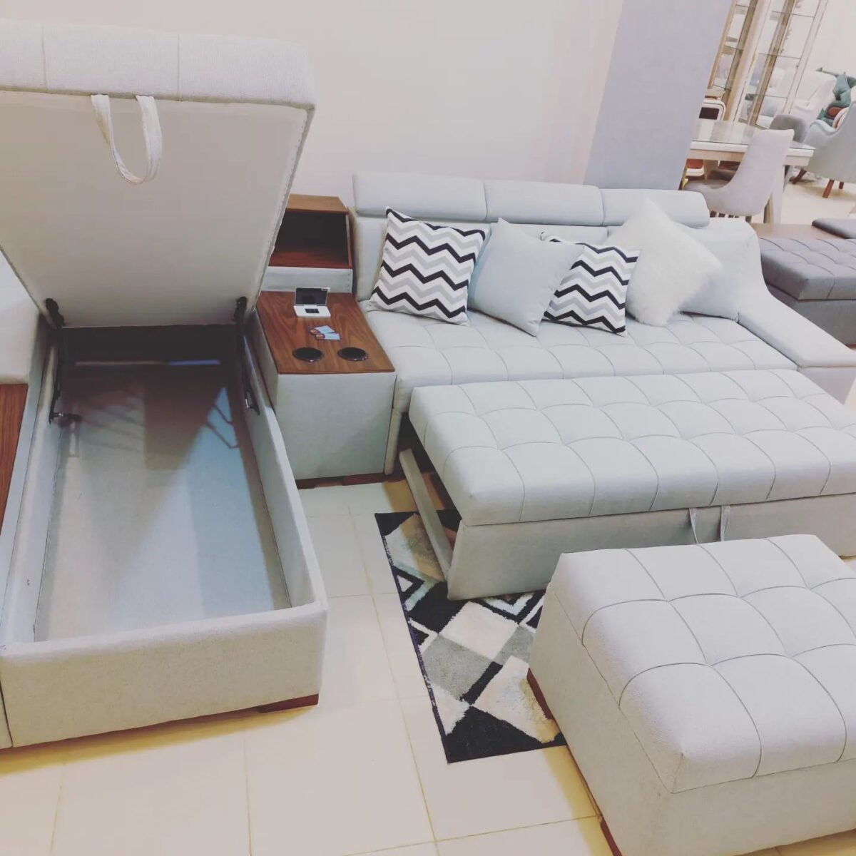 – ركنات “L” Modular تقدر تبدأ بقطعة صغيرة وتزوّدها حسب المساحة؛ التنجيد قماش كتان عملي وسهل التنضيف أو مايكروفايبر لو نفسك في لمسة قطيفة.