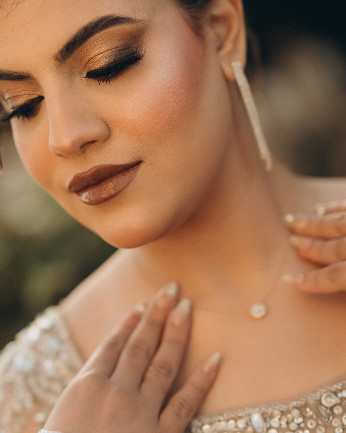 مكياج العيون عند دنيا له أسلوب خاص، بتحب تشتغل بالدرجات الترابية والروز الناعم للعرايس اللي بيدوروا على إطلالة هادية، وكمان بتتقن الستايل السموكي بدرجات الرمادي والبني للسهرات. بتركب رموش صناعية خفيفة تدّي للعين شكل أوسع وجاذبية أكبر من غير ما تسبب ثقل. الحواجب كمان بتحددها بخطوط رقيقة علشان الشكل النهائي يفضل طبيعي.